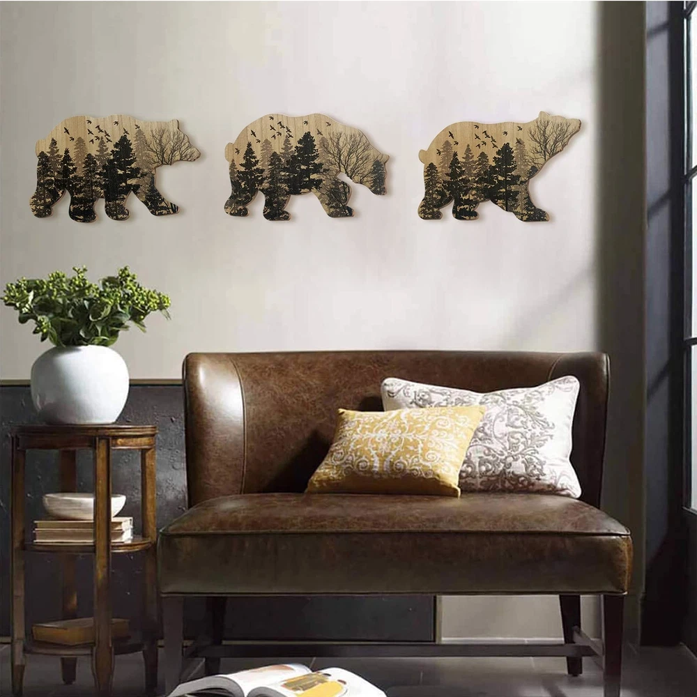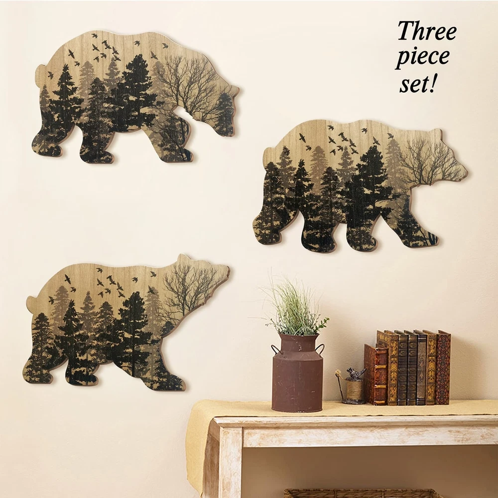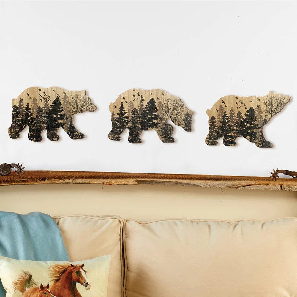 Family Rustic Wooden Bear Decor with 3 Bears - Woodland Rustic Wall Decor for Home, Cabin, Hunting or Mountain Cottage, Wooden Animal Themed Decor. Product Details Color: Style2 Brand: VividLadybug UPC: 724087303440 EAN: 0724087303440 MPN: Does not apply Product Dimensions: 11 x 7.5 x 0.01 inches Item Weight: 1.43 pounds Manufacturer: VividLadybug Country of Origin: China Date First Available: November 1, 2022 Design Description: Animal print, rustic style, add color to your life. The best choice for home decorating and gifting to friends! High quality: fine workmanship, good picture, lifelike! Applicable scenarios: bedroom, living room, office, kitchen, garden, yard, etc. Easy to install: there are hooks on the back for easy hanging Service: If for any reason you are not 100% satisfied, please let us know and our customer service team will help you return or refund your money.