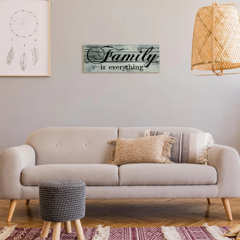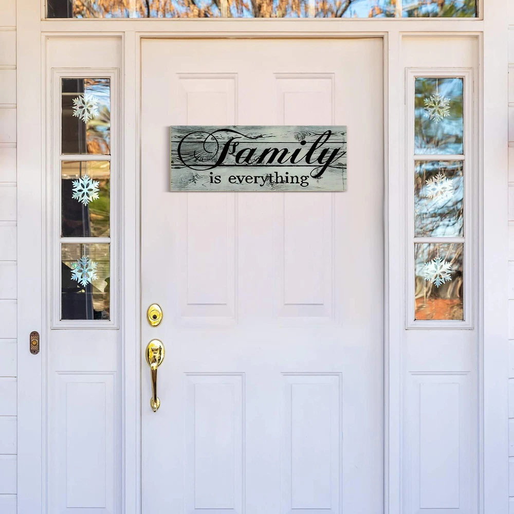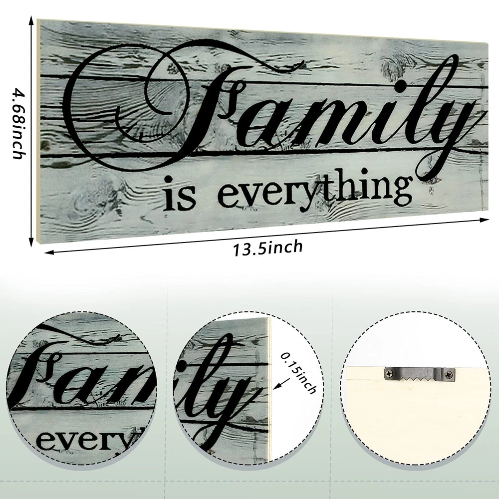 Features: Practical and useful: The retro design of family wooden sign is suitable for different decorative themes, such as rustic, farmhouse, woodland, bohemian, vintage, and hippie, as well as a thoughtful present for hostess, moms, friends, teachers on bridal showers, birthdays or Christmas. Nice home decorations: The wooden signs are three-dimensional, they will bring an attractive landscape to your living room, bedroom, gallery, walls, dining room, bathroom, office and so on. Specifications: Material: wood Size: approx. 13.5 inches in length, 4.68 inch in width Color: blue gray Package includes: 1 x Family wood decoration Note: Manual measurement, please allow little size errors. What you can get: you will receive 1 piece wood sign printed with the saying of family is everything, vintage home decor accents to bring farmhouse charm to any space, bringing you delightful mood Quality material: the family sign is made of quality wood, durable and safe to use, with sanded surface and wood texture, neat edge won't hurt your hands and body, convenient for you to complete home decoration Suitable dimension: wall hanging sign decor measures approx. 13.5 inches in length, 4.68 inch in width; It is lightweight that easy to be hung on wall or door Easy to use: the family sign have 2 metal hooks on the back, which to meet your hanging needs in various occasions, well match with any home decor style Widely applicable: farmhouse wall decor is suitable for indoor or outdoor use, such as, kitchen, bedroom, living room, hallway, porch, balcony garage and so on; You can hang it on the door, window, wall or fireplace, easily adding nice decoration effect