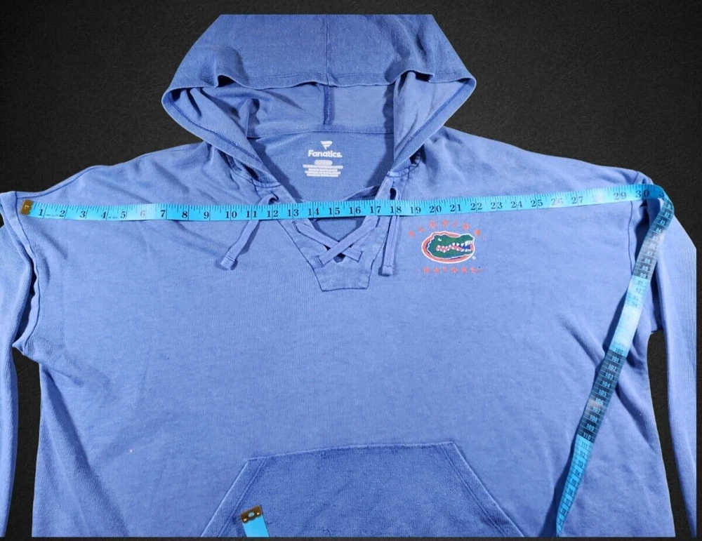Embrace your team spirit with the Fanatics Florida Gators Blue Pullover Lace Up Hoodie, designed specifically for the ultimate female fan. This hoodie features vibrant team graphics that show your support for the Gators, and the lace-up front adds a touch of style to your game-day ensemble. Crafted for comfort and warmth, it's the perfect addition to your collection of Florida Gators gear. Made for the regular season and beyond, this hoodie is a size XL, ensuring a comfortable fit for most. With its sturdy construction from Bangladesh, it's ready to brave the elements while you cheer on your favorite college football team. Whether you're at the stadium or on the streets, this Fanatics sweatshirt is your go-to for showing off your team pride. If you would like to see more items like this one, please visit our ebay store by clicking the following link: Cocos Modern Living | eBay Store * RETURNS - Customer Satisfaction is important to us. Good communication is crucial for ebay sales. PRIOR to feedback, notify EZ Sales of any concerns using eBay messaging. Item must be returned in its original condition, with tags if applicable. BUYERS are responsible for return postage. Should the wrong item be shipped, EZ Sales will gladly refund the entire amount including return shipping.