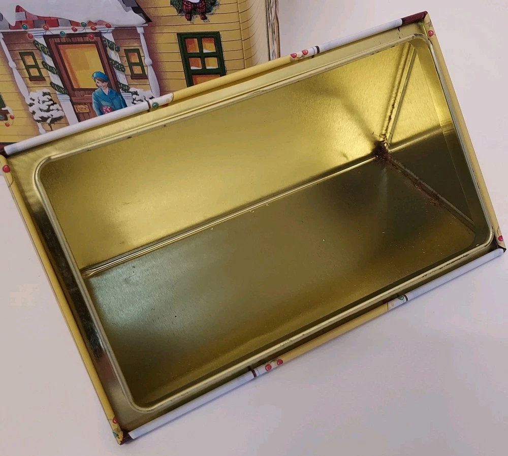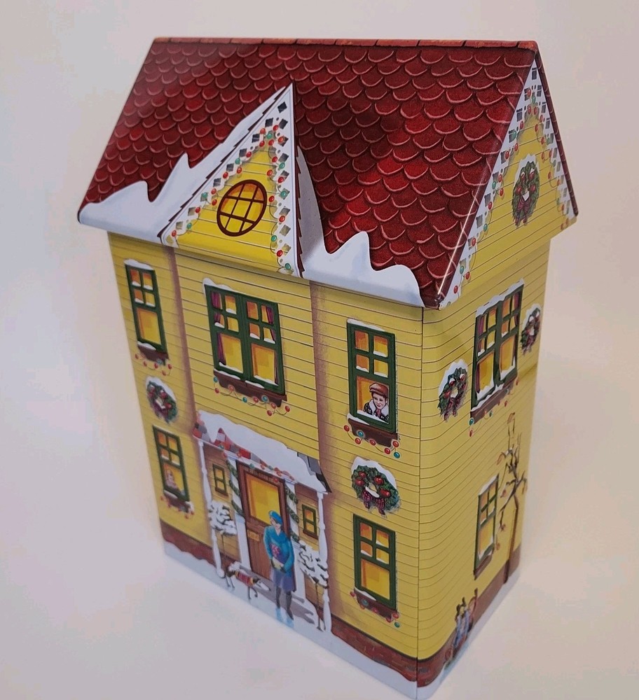 This collectible house tin is in very good condition on the outside. There are no dents or scratches. On the inside there is rust. Please see the last 3 photos.