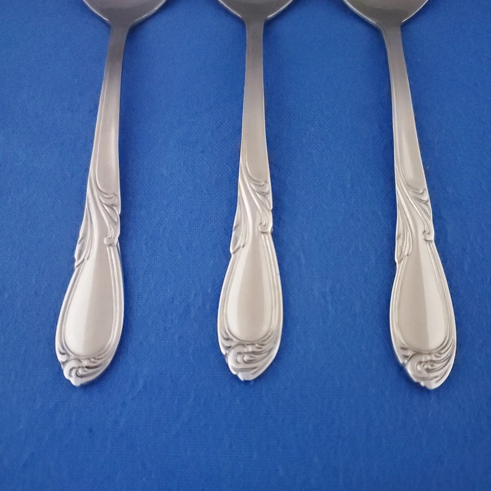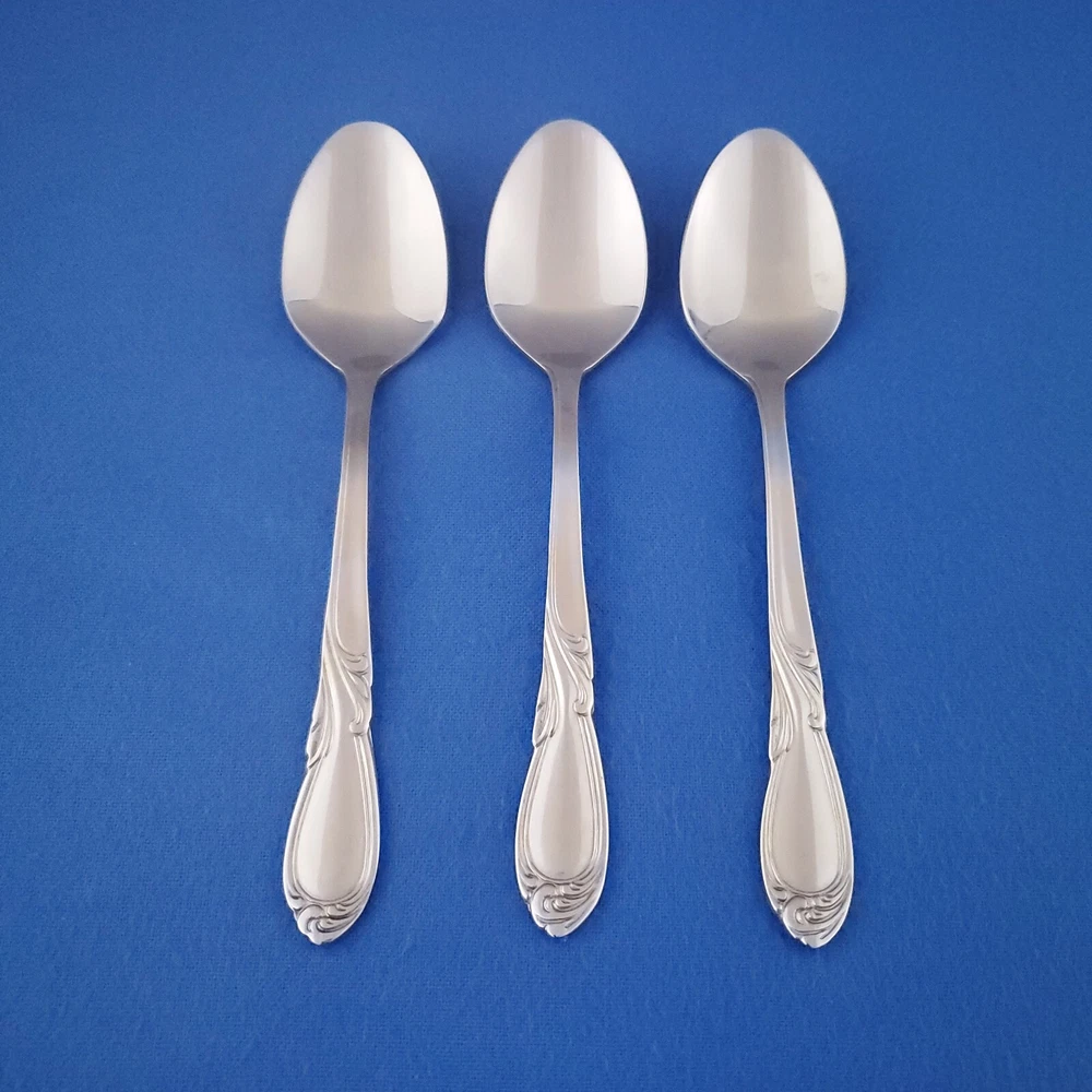Farberware CAMEO Stainless Set of 3 Teaspoons 6 1/4" Indonesia Glossy Flatware These beautiful pieces are in Used Condition. There are some marks, scuffs, nicks and surface scratches consistent with age and use. Please view the photos carefully for condition details. Don't forget to check out the other items in my shop. I'm getting in new fun things all the time. Thank you for looking! Have a great day!