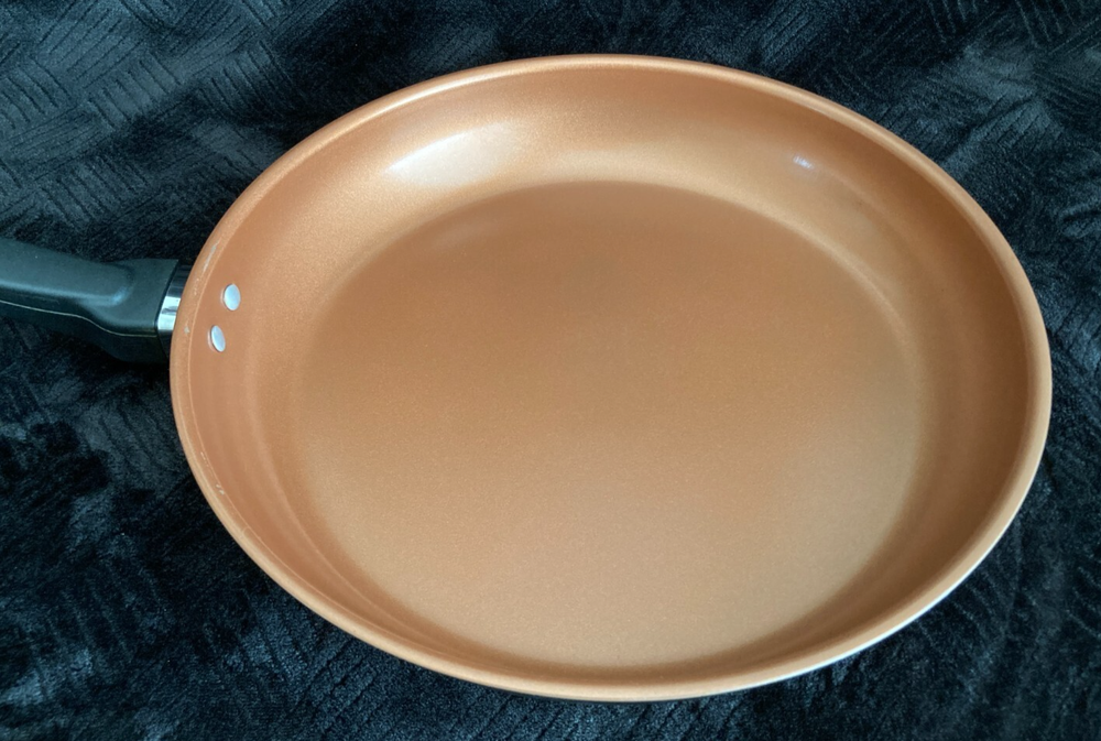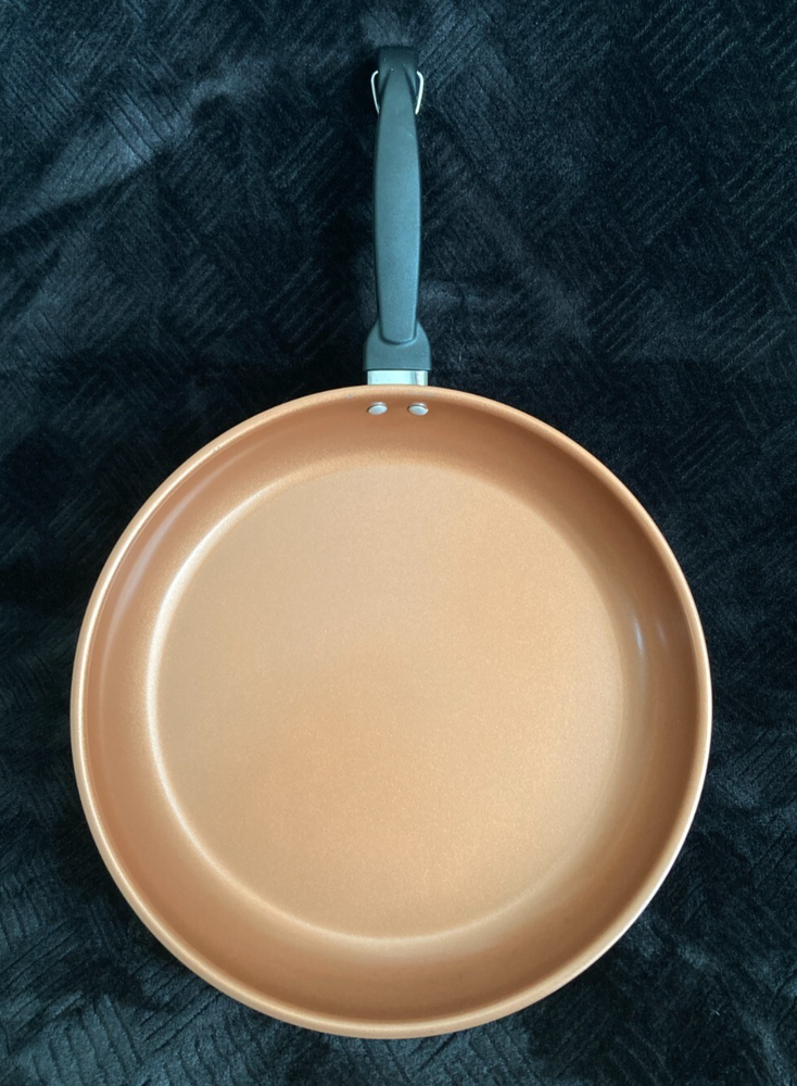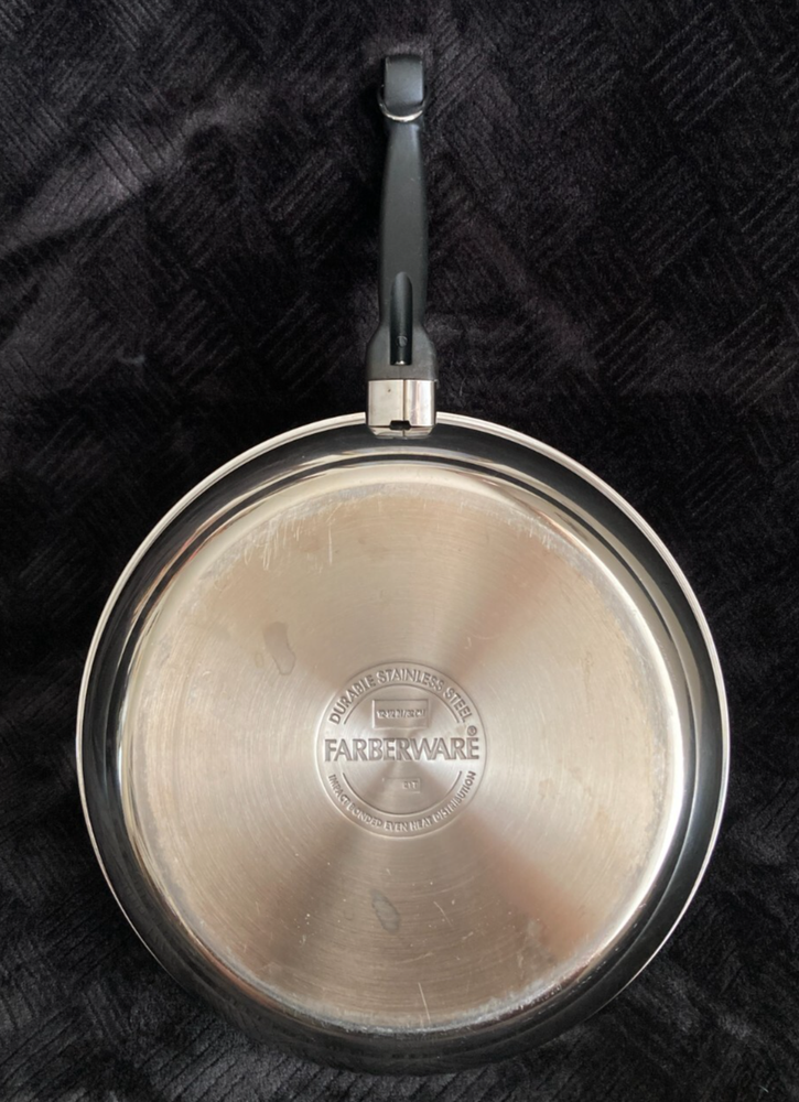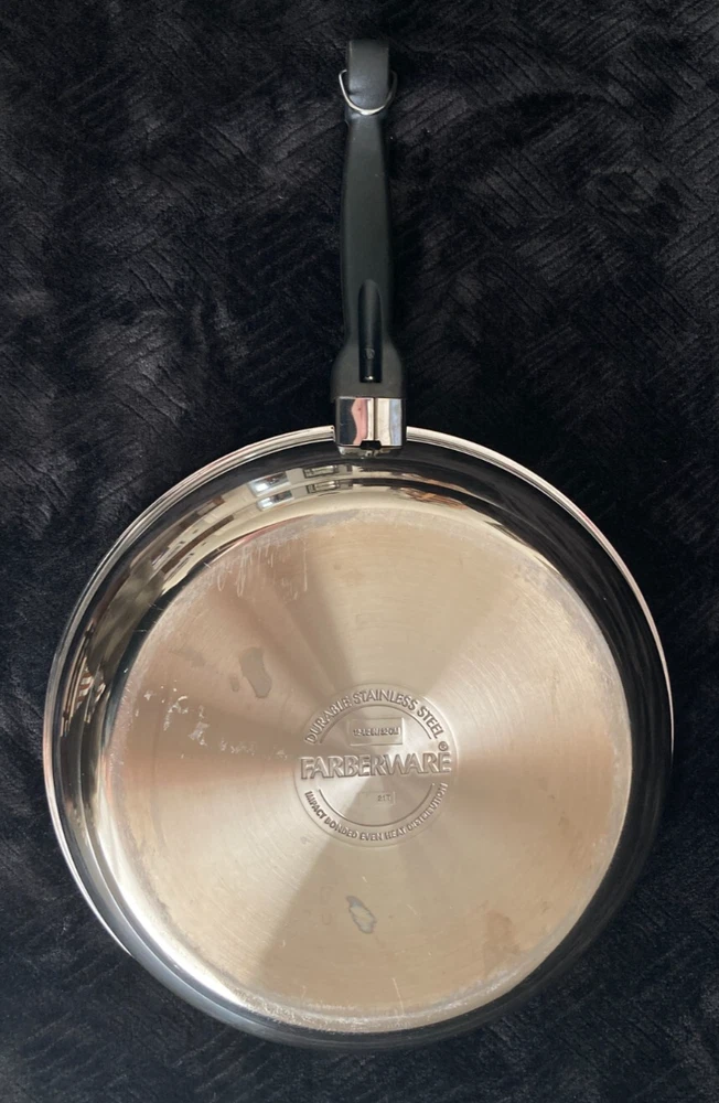 Elevate your cooking experience with the Farberware Classic Traditions Stainless Steel 12.5'' Ceramic Nonstick Frying Pan. Designed for both electric and gas stovetops, this versatile pan features a durable stainless steel construction coupled with a nonstick surface that ensures healthy cooking and easy cleanup. The pan's round shape and 12.5-inch diameter provide ample space for a variety of dishes, while the copper-colored exterior adds a touch of elegance to your kitchen. Whether sautéing vegetables or frying eggs, this frying pan is a reliable addition to your cookware collection. This Farberware Classic Traditions Stainless Steel 12.5'' Ceramic Nonstick Frying Pan is used and on great shape. Please view all listing photos and message me with any questions you may have or if seeking additional photos. Comes from a pet free some free home and I have been the only owner. Orders are packed and sent same day or next business day. Timeless tradition meets cutting edge technology with the Farberware Classic Traditions Stainless Steel Ceramic Nonstick Frying Pan. This essential piece of cookware features a traditional frying pan design with mirror-polished stainless steel exteriors to deliver a radiant touch of kitchen style. The 12.5-inch skillet also boasts a ceramic nonstick cooking surface for superior searing, enhanced browning, and easy food release. A full cap base ensures fast, even heating on all stovetops, including induction and is dishwasher safe for effortless cleanup. Oven safe to 350°F, this stainless steel fry pan comes ready out of the box to cook all your family favorites. LONG LASTING FRY PAN: Durable, polished stainless steel construction incorporates a full cap base for fast and even heating COOK & RELEASE: Frying pan boasts a ceramic nonstick cooking surface for superior browning and easy food release DISHWASHER SAFE: Feel free to toss these durable pots and pans in the dishwasher for an effortless cleanup FINISH IT OFF: Stainless steel skillet is oven safe to 350°F to safely finish meals in the oven