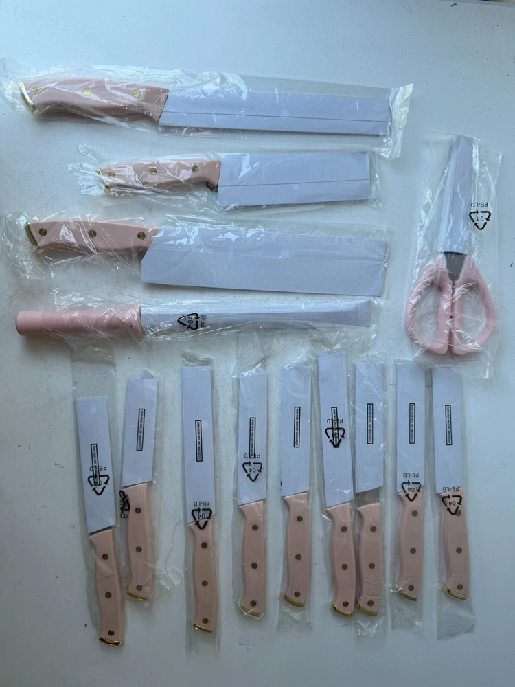 Farberware Triple Riveted Cutlery Knife Block Set Stainless Steel (15-Piece) Description Farberware Triple Riveted Cutlery Knife Block Set Stainless Steel (15-Piece). Product Detail • Brand : Farberware • Blade Material : Stainless Steel • Blade Color : Silver • Type : Cutlery Knife Block Set Please message me if you have any questions.
