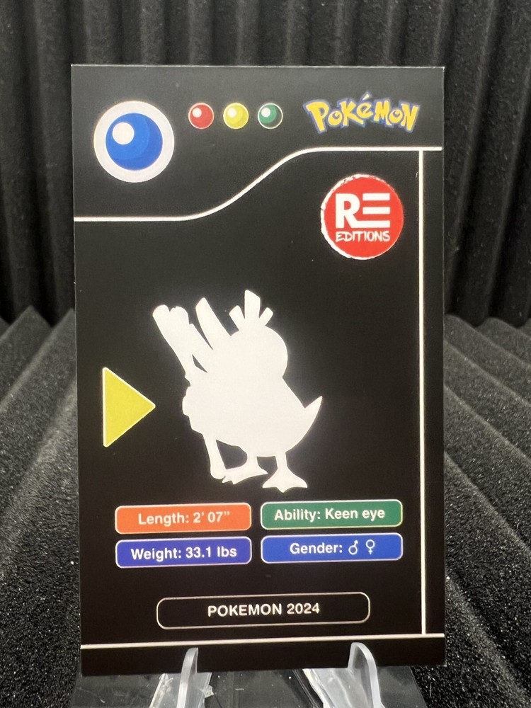 The image shown in this listing is of one of the actual cards available. In the Pokédex Black Kanto 2024 set, some cards may have minor white ink misprints on the front or black ink smears on the Pokémon silhouette on the back-- both are common printing issues with this release. I always photograph the card in the worst condition from the batch, so buyers can expect to receive a card in the pictured condition or better. All cards are pulled directly from sealed product and are in near mint condition with clean edges and sharp corners. Looking for your favorite run of Pokémon? Check my page we have a wide variety of sets! We are happy to offer combined shipping on multiple items purchased from our shop, helping you save on shipping costs. Whether you're interested in a single item or several, feel free to send us an offer! We are committed to responding to all inquiries within one business day.