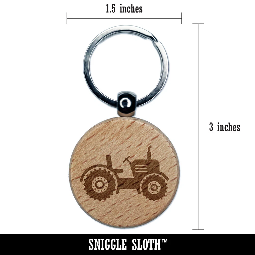 Farm Tractor Engraved Wood Round Keychain Tag Charm
