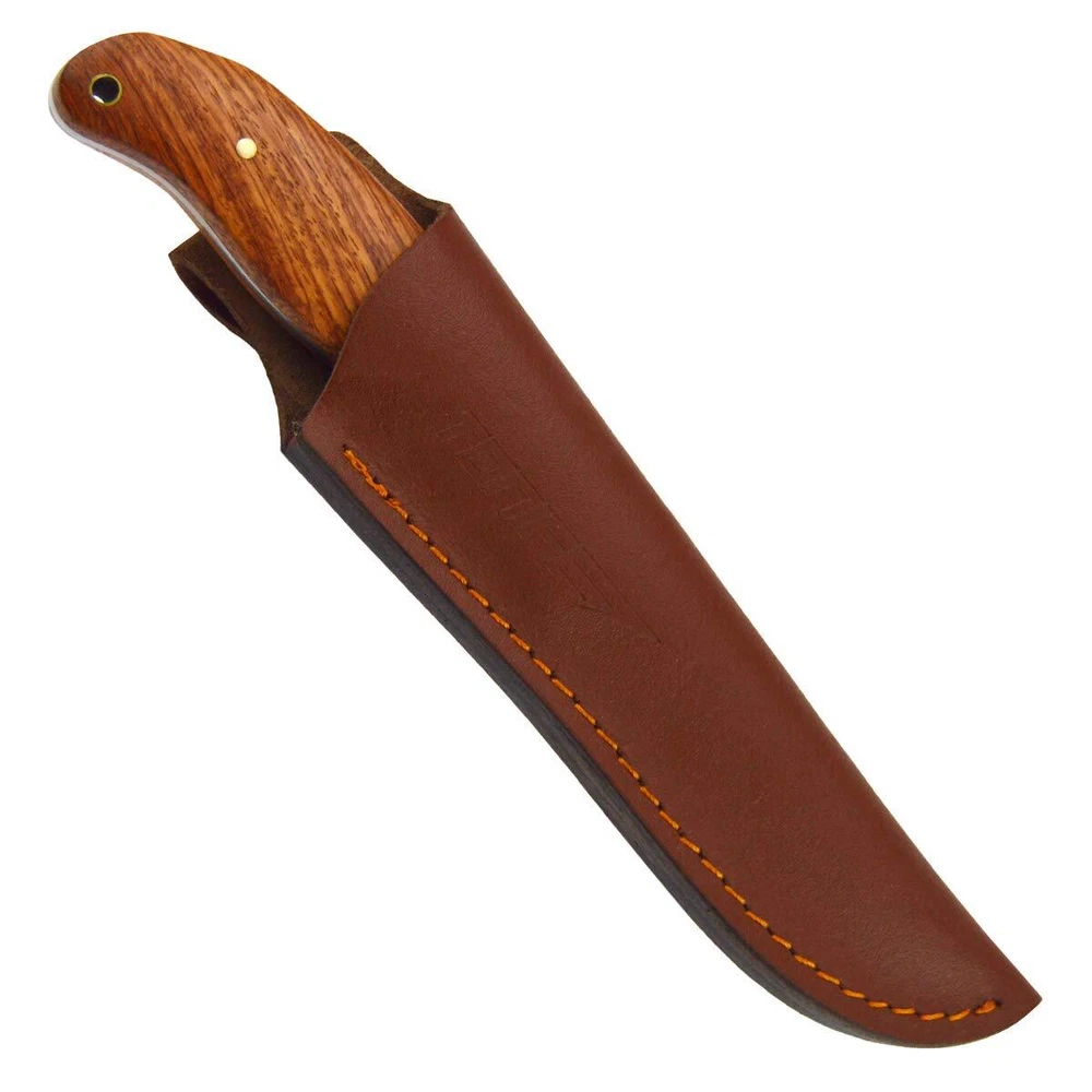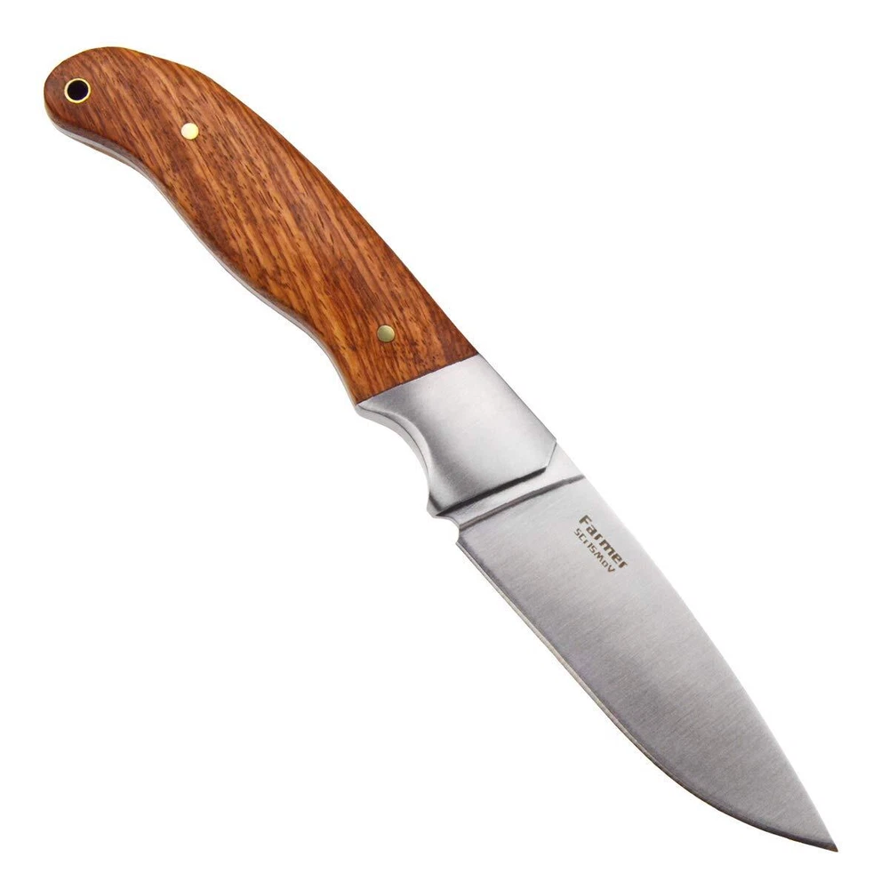 is a sub-brand of Flyer Industrial Co., LTD., Its products cover household and outdoor sports. , is committed to make household life fashionable and colorful; and strive to make outdoor sports convenient and joyful. Farmer is the one you carry on your belt, or stow in your backpack, fishing box, glove compartment, etc. We like the everyman for pretty much everything – from fishing, hunting, and boating to super-tough survival and tactical applications. Model: HKT4003 Blade Edge: Plain Blade Steel: 5Cr15MoV Blade Finish: Satin Blade Thickness: 0.13" Handle: Rosewood Overall length: 8.58" Blade Length: 3.62" Weight: 5.61oz Accessory: Leather Sheath Blade is made of 5Cr15MoV stainless steel with satin finish. Natural rosewood handle has ergonomic feel that fits comfortably in your hand. Leather Sheath can be configured into belt carry for easy access SPECIFICATIONS: Blade Length: 3.62"; Blade thickness: 0.12";Overall Length: 8.58";Weight: 5.61oz. Full-tang design for camping , survival and fishing