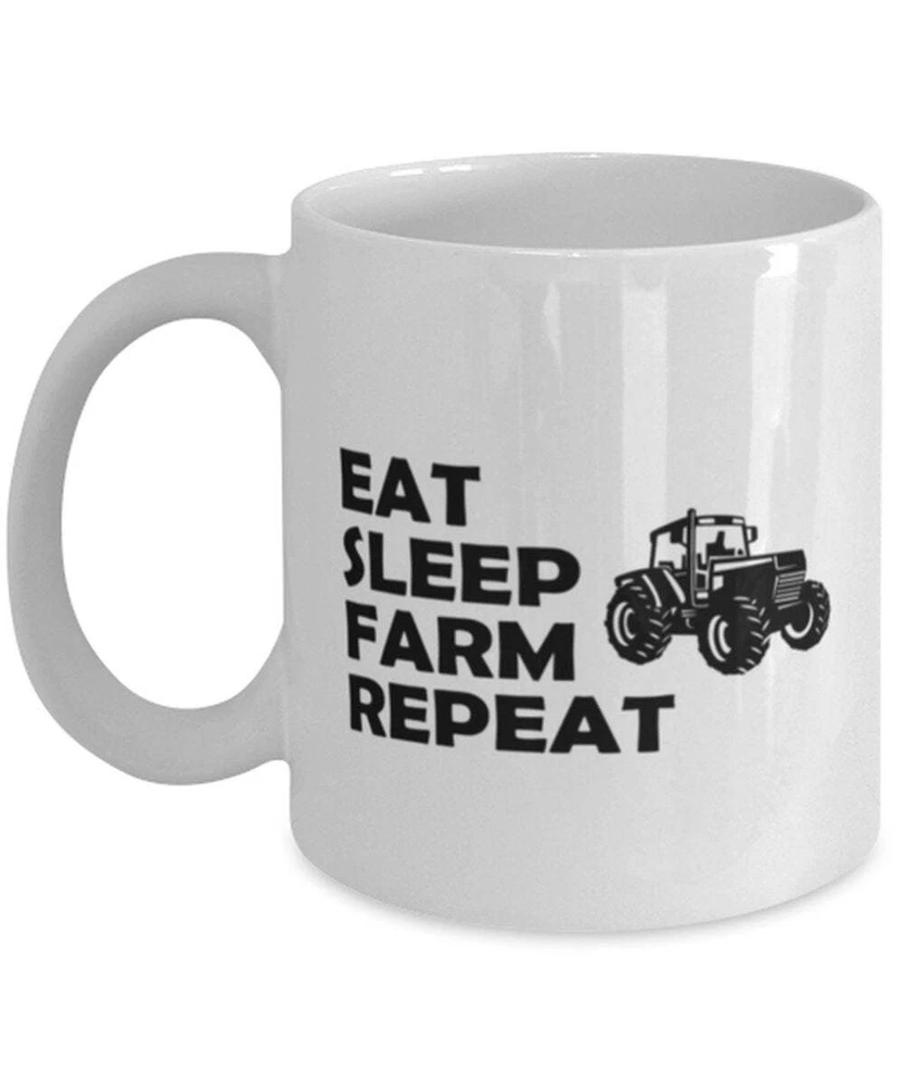 Farmer Funny Coffee Mug Eat Sleep Farm Repeat - White Coffee Mug Product Details.. This high quality 11oz. ceramic white mug has a premium hard coat that provides crisp and vibrant color reproduction sure to last for years. Perfect for all hot & cold beverages. The highest quality printing possible is used. It will never fade no matter how many times you wash it. Material: 100% Ceramic. Print both sides. Dishwasher and Microwave Safe. High Gloss + Premium White Finish. Printed in the U.S.A. Personalized & Custom. We support personalized and custom mug to add custom, when placing an order, you can add notes to the "order note" in shipping address section. Also you can contact us directly via message. Shipping Info. Ready to ship in 1 to 2 business days, All products are made-to-order and proudly printed in the United States. Shipped by USPS and DHL, You will receive your order in 5-7 days. Replace & Refund. All products are defective during shipping broken, chipped will be replaced free of charge. You are not satisfied with the product, we will refund 100% money to you. If any other issues arise, please do not hesitate to message, we would be more than happy to assist you.
