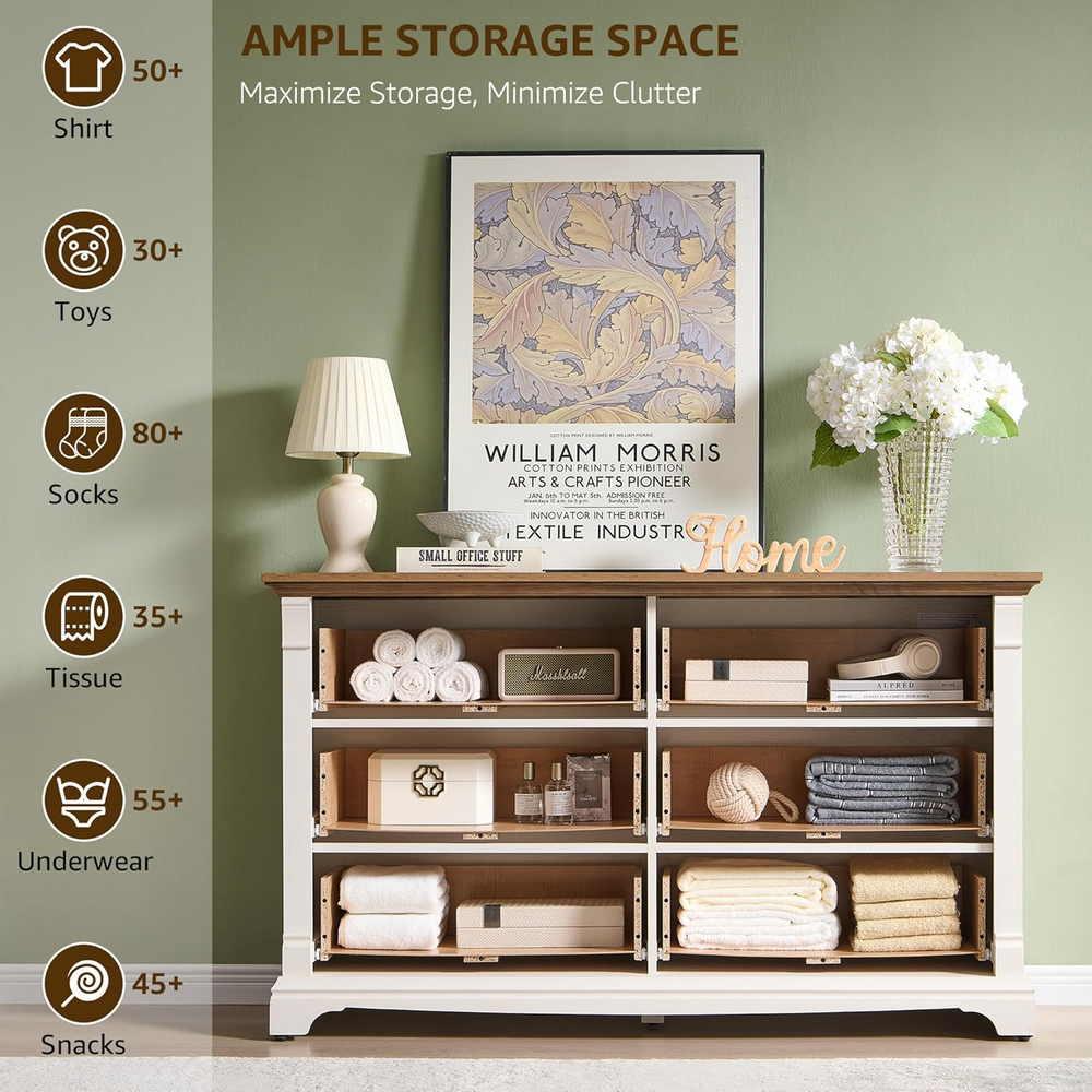 Farmhouse 6 Drawers Dresser for Bedroom, 54" Wide Large Dressers & Chests of Dra