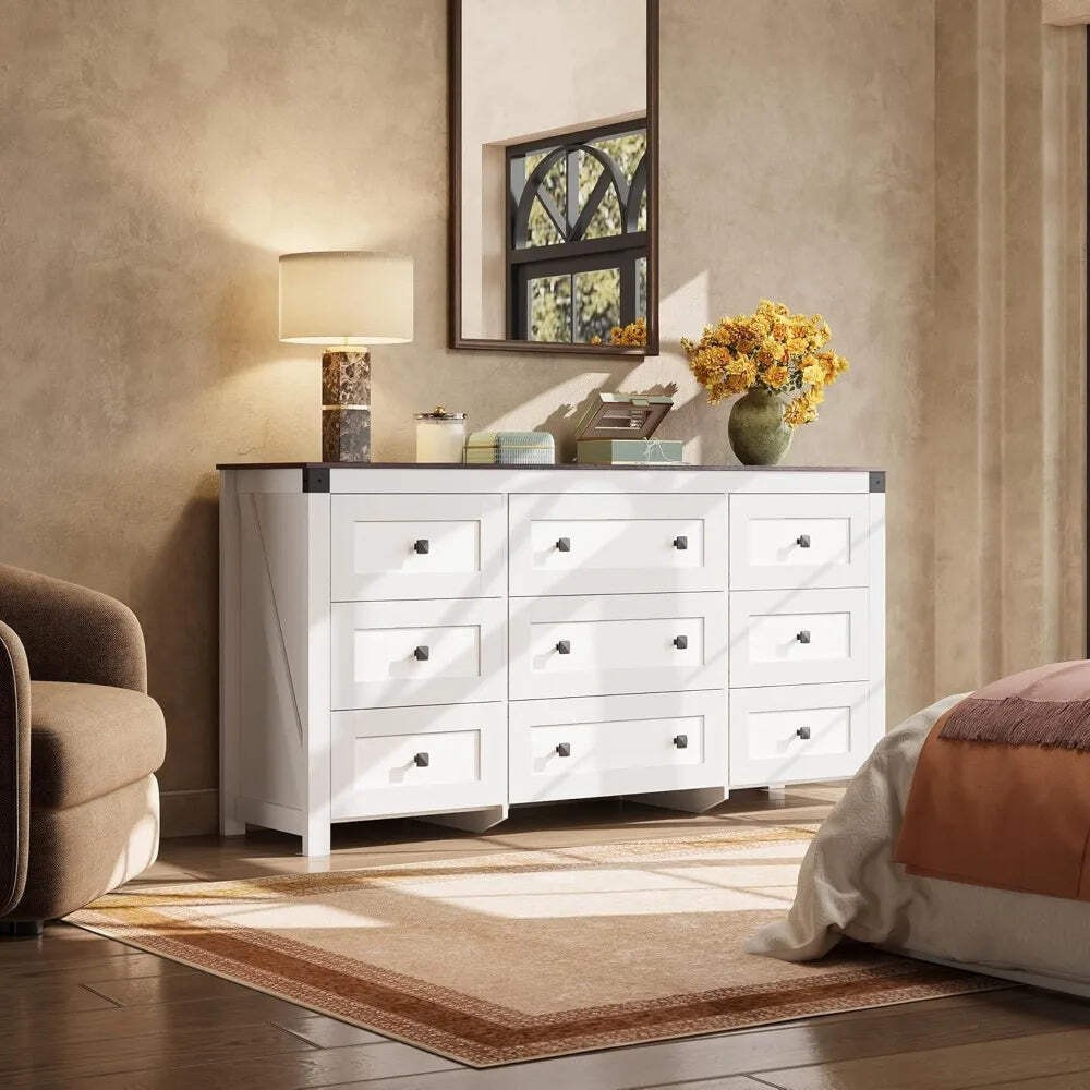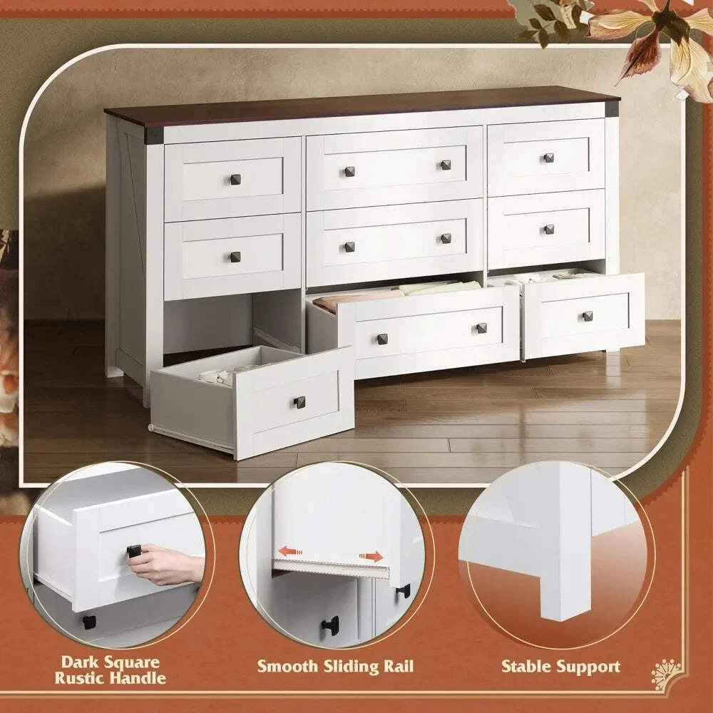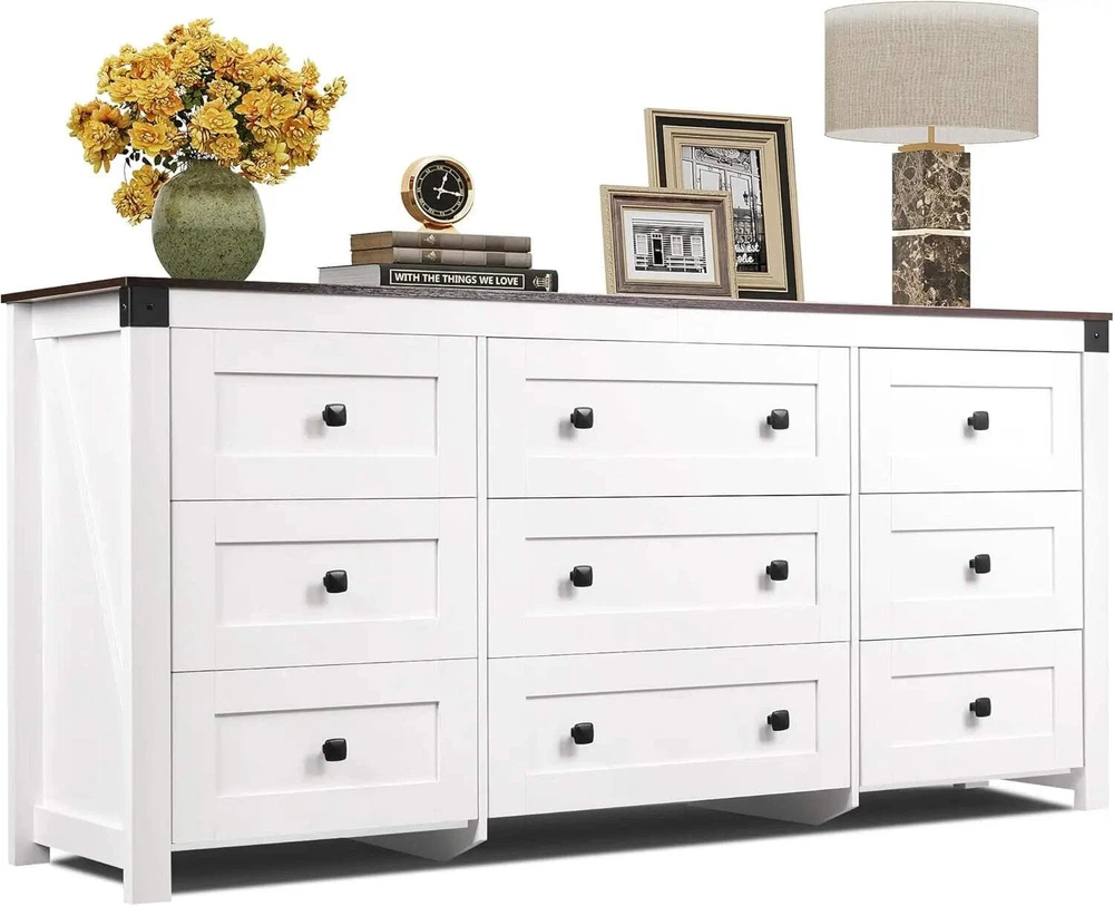 Farmhouse 9 Drawer Dresser Storage Organizer for Bedroom and TV Stand Transform Your Space with the Ljustra Farmhouse Dresser Introducing the Ljustra Farmhouse Dresser, a perfect blend of style and functionality for your bedroom or living area. This stunning 63" wide dresser features a charming white finish accented by a rustic brown wood top, making it a versatile addition to any décor. Key Features: Farmhouse Charm: The retro square handles and warm tones provide a cozy, inviting atmosphere. Ample Storage: Dimensions: 15.67"D x 62.2"W x 31.5"H. Includes six 13.31-inch depth x 14.8-inch width drawers and three 13.3-inch depth x 21.37-inch width drawers, perfect for organizing clothing and essentials. Sturdy Construction: Made from durable engineered wood with an anti-tipping device for safety. Each drawer holds up to 30lbs, while the wood top can support up to 130lbs, perfect for your TV and decorative items. Smooth Functionality: Equipped with smooth metal slides for easy access and stability. Easy Assembly: Comes with detailed instructions and pre-coded parts to ensure a quick and hassle-free setup. Elevate your home’s storage solutions with the Ljustra Farmhouse Dresser. Functional, safe, and stylish, it’s the ideal organizer for your bedroom or as a TV stand in your living room! Explore more from Ljustra Dresser Home Decor bedroom furniture Farmhouse 9 Drawer Dresser Storage Organizer for Bedroom and TV Stand Transform Your Space with the Ljustra Farmhouse Dresser Introducing the Ljustra Farmhouse Dresser , a perfect blend of style and functionality for your bedroom or living area. This stunning 63" wide dresser features a charming white finish accented by a rustic brown wood top, making it a versatile addition to any décor. Key Features: Farmhouse Charm: The retro square handles and warm tones provide a cozy, inviting atmosphere. Ample Storage: Dimensions: 15.67"D x 62.2"W x 31.5"H. Includes six 13.31-inch depth x 14.8-inch width drawers and three 13.3-inch depth x 21.37-inch width drawers, perfect for organizing clothing and essentials. Sturdy Construction: Made from durable engineered wood with an anti-tipping device for safety. Each drawer holds up to 30lbs, while the wood top can support up to 130lbs, perfect for your TV and decorative items. Smooth Functionality: Equipped with smooth metal slides for easy access and stability. Easy Assembly: Comes with detailed instructions and pre-coded parts to ensure a quick and hassle-free setup. Elevate your home’s storage solutions with the Ljustra Farmhouse Dresser. Functional, safe, and stylish, it’s the ideal organizer for your bedroom or as a TV stand in your living room! Explore more from Ljustra Dresser Home Decor bedroom furniture × × × × × × × × Shipping info Click the Shipping & Payments tab above the listing description for more info FREE Shipping Click the Shipping & Payments tab above the listing description for more info! Additional delivery notes PICK UP OPTION Sorry, our items are NOT available for pick-up. PAYMENT Immediate payment is required upon selecting "Buy It Now" or upon checking out through the cart. We accept payment via U.S. PayPal accounts and all Major Credit Cards, Debit Cards & Google Pay. We are legally required to collect sales tax in those states and localities where we maintain a physical presence (nexus). The applicable amount of sales tax charged to an order will be calculated based on the shipment destination's state and local sales tax laws. Thank you for shopping with us on eBay! Additional Information No additional information at this time Ask seller a question You might also like Modern Black U-Shaped Corduroy Sectional Sofa w/ Chaise Lounges, 130" Wide Ljustra 104" L-Shape Modular Couch - Modern Comfy Upholstered Sectional Sofa for Luxurious 3 Piece Velvet Chesterfield Living Room Sofa Set Ljustra 110 Inch Sleeper Sofa Sectional Bed with Storage Chaise Contact To contact our Customer Service Team, simply click the button here and our Customer Service team will be happy to assist. Ask seller a question © My Store Shipping & Payments Shipping is FREE for this item Payment Accepted Payment Methods Immediate payment is required upon selecting "Buy It Now" or upon checking out through the cart. We accept payment via U.S. PayPal accounts and all Major Credit Cards, Debit Cards & Google Pay. We are legally required to collect sales tax in those states and localities where we maintain a physical presence (nexus). The applicable amount of sales tax charged to an order will be calculated based on the shipment destination's state and local sales tax laws. Thank you for shopping with us on eBay! Returns Returns are accepted Items must be returned within 14 days of the auction ending Buyer will pay for return shipping. eBay integration by