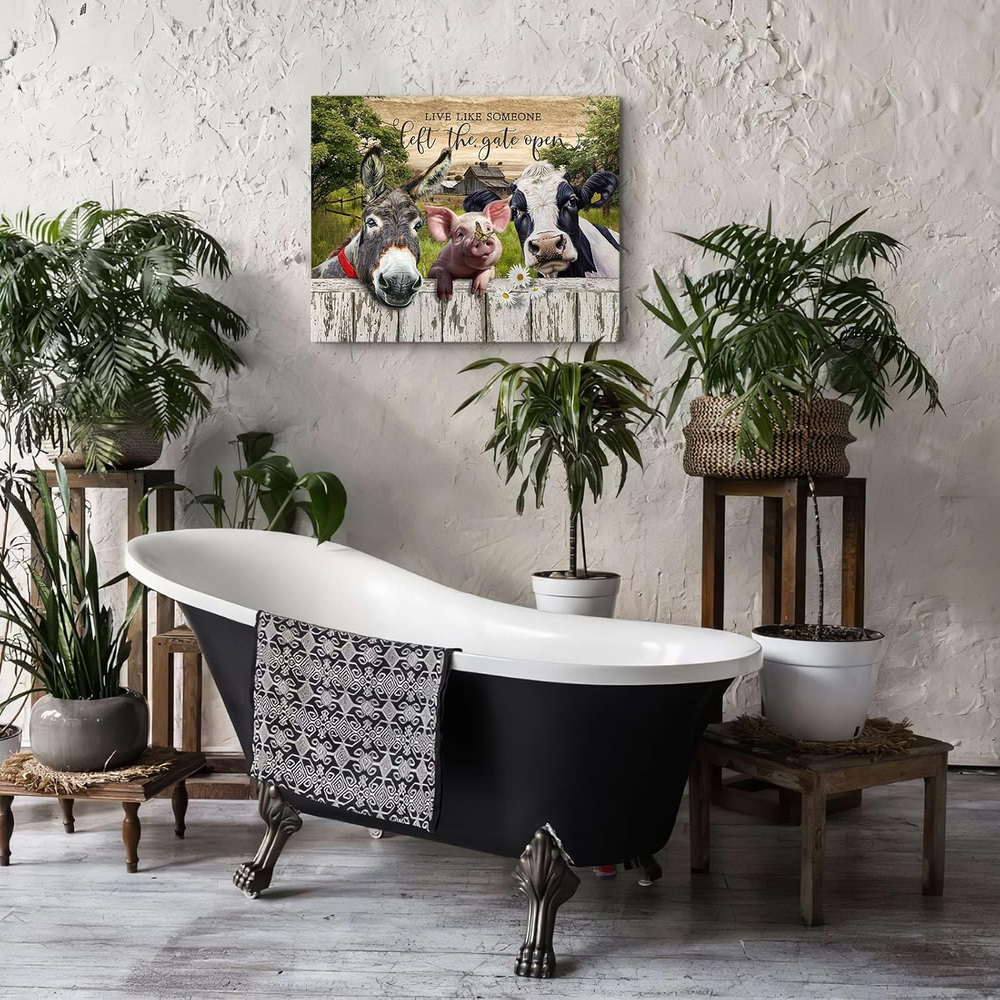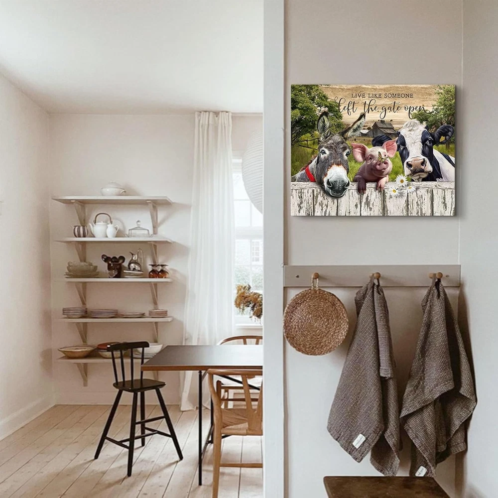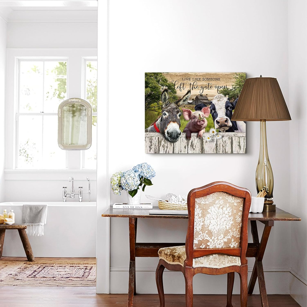 This farmhouse wall art is absolutely charming! The vibrant colors and retro design bring so much warmth to my space. The canvas is high quality, with sturdy framing, and the farm animal theme adds a cozy, rustic touch. Perfect for anyone who loves vintage country decor—it looks even better in person!