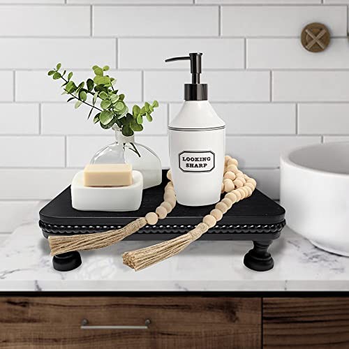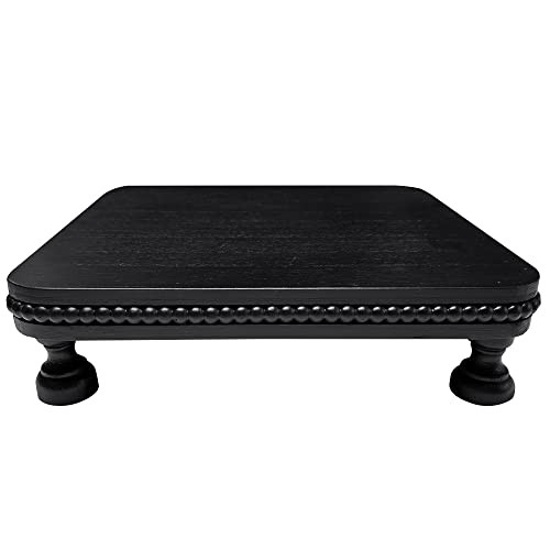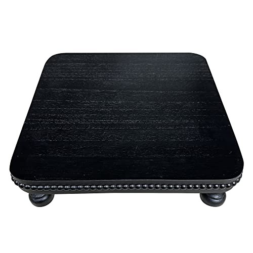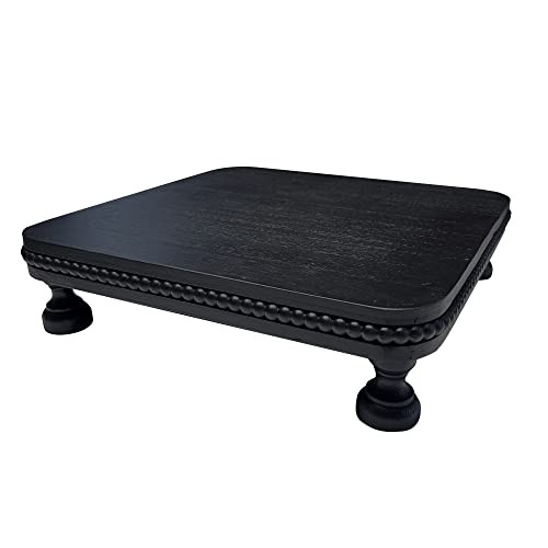 Farmhouse Black Beaded Wood Riser Pedestal Stand 12 Inch Display