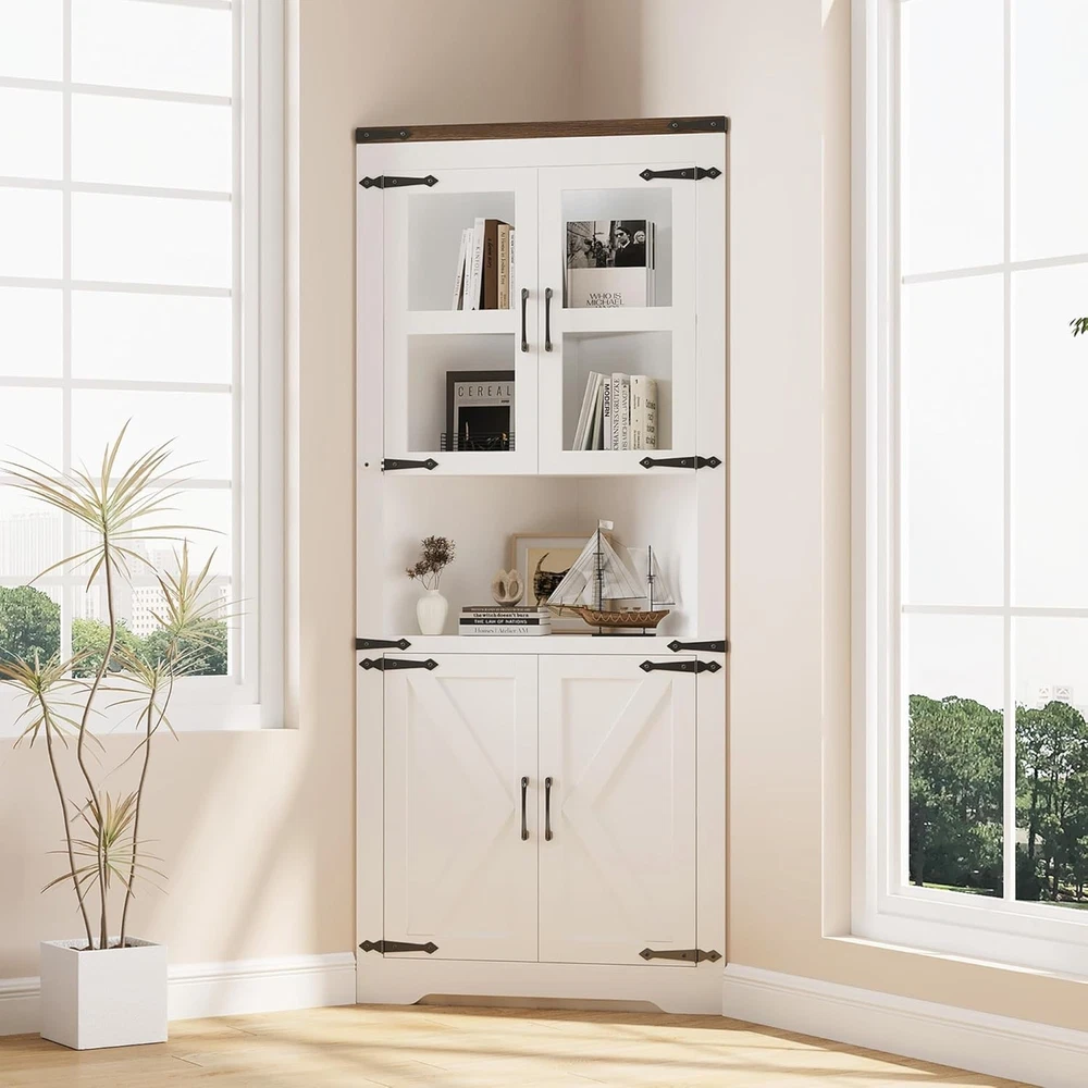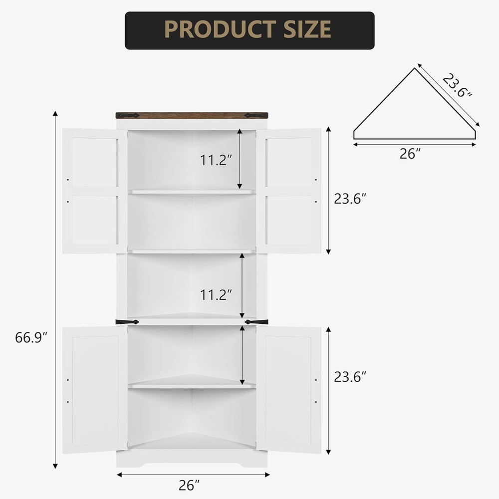 Farmhouse Corner Cabinet,Tall Storage Cabinet with 4 Door and Adjustable Shelves