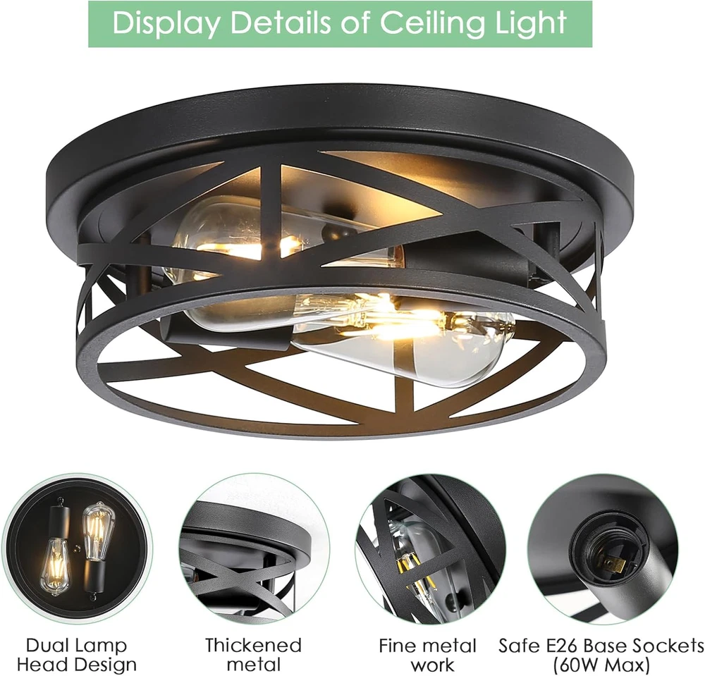 Store New Arrivals Add to Favorite View Feedback Contact Farmhouse Flush Mount Ceiling Light Fixtures, Industrial Close to Ceiling Light 2-Lights, 11 Inch Metal Black Cage Rustic Style Ceiling Light Fixtures for Hallway Kitchen Bedroom Entryway Description Item model number YOBL006-1 Light Source Type [POSSIBLE VALUES: 'LED', 'Incandescent', 'Halogen'] Style Mid-Century Modern Number of Items 1 Power Source Corded Electric Number of Light Sources 2 Country of Origin China Batteries Included? No Lighting Method LED Controller Type Push Button Unit Count 1.0 Count Room Type bathroom, vanity Assembly Required No Switch Type Push Button Product Dimensions 12"L x 8"W x 6"H Material Metal Installation Type Flush Mount Model Name YOBL006-1 Specific Uses For Product Indoor use only Indoor/Outdoor Usage Indoor Control Method App Light Color White Batteries Required? No Item Weight 3.05 pounds Light fixture form Close to Ceiling Special Features Anti Rust Special Feature Anti Rust Part Number YOBL006-1 Shade Color black Mounting Type Ceiling Mount Color Black Shape rectangular prism Voltage 1.2E+2 Volts Shade Material Metal Fixture Type Non Removable Included Components Shade Size 1-PACK Chic Cage Farmhouse Design: Elevate your interior décor with these vintage industrial farmhouse close to ceiling lights. Featuring metal construction and sleek black finishes, they seamlessly blend rustic charm with modern elegance Effortless Flush Mount Installation: Easy installation, these black ceiling lights can be quickly flush mounted to your ceiling, making them ideal for indoor spaces like kitchens, living room, bedrooms,entryways, garage and hallways Premium Craftsmanship: Crafted from metal materials, the flush mount ceiling light fixtures are built to last. Their sturdy construction guarantees durability and stability, ensuring years of reliable performance and enjoyment in your living spaces Bulbs Requirement: Each light equipped with 2 * E26 bases, our lights are compatible with a wide range of standard light bulbs, including LED, CFL, incandescent, and halogen bulbs. (Max 60W - BULBS NOT INCLUDED) Seller Service: If there is any damaged part or questions about our house indoor 2-light black ceiling lights, please feel free to . Please feel free to , our customer service team will solve your problem within 24 hours Product Description ABOUT US We offer the best prices around on high quality products. Our E-store includes media such as books, movies, music and games while offering electronics, toys, sporting apparel, clothing, tools, general home, garden items and more. SHIPPING We are always working hard to ensure your package arrives as soon as possible. Please understand that some factors like weather, high postal traffic, and the performance of shipping companies are outside of our control. We offer free shipping to the lower 48 states and ship within 2 business days of payment, usually sooner. We do not accept P.O. Boxes. Please provide a physical address. For shipping outside of the continental USA, we only use eBay's Global Shipping Program.The item is shipped to KY and then sent to the rest of the world. International customers are responsible for all duties and taxes. Continue to check out in order to calculate costs for shipping the item to your country. Messages regarding eBay's Global Shipping Program MUST be directed at eBay EXCLUSIVELY. RETURNS We offer a 30-Day Return Policy on items which you are not completely satisfied with. You have the option for a full-refund or an exchange of the item. No returns are available on items shipped outside of the USA. PAYMENT We accept PayPal. CONTACT US This page content is yet to come Please ad us to your favorite seller and visit again later Thank You CUSTOMER SATISFACTION We try our very best to make sure every customer is completely satisfied. If there's a problem, message us! We're happy to help. WE ACCEPT Copyright © 2021 AutoDS. | All Rights Reserved