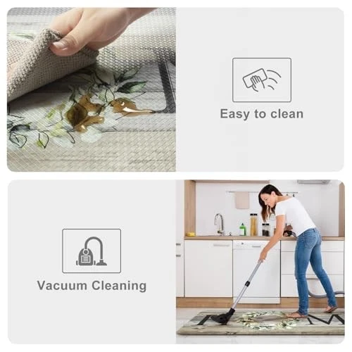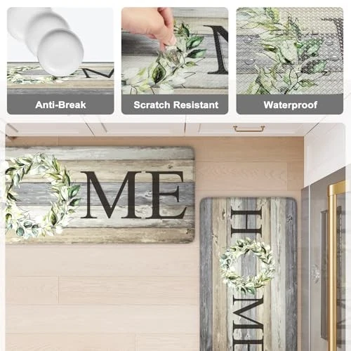 Love these farmhouse-style kitchen mats! The cushioned anti-fatigue design is a lifesaver when standing at the sink or stove for long periods. The set of two fits perfectly in my kitchen, and the grey color hides spills well while adding a cozy touch. They’re easy to clean and stay in place—no slipping! Super comfortable and stylish upgrade for any kitchen. Highly recommend!