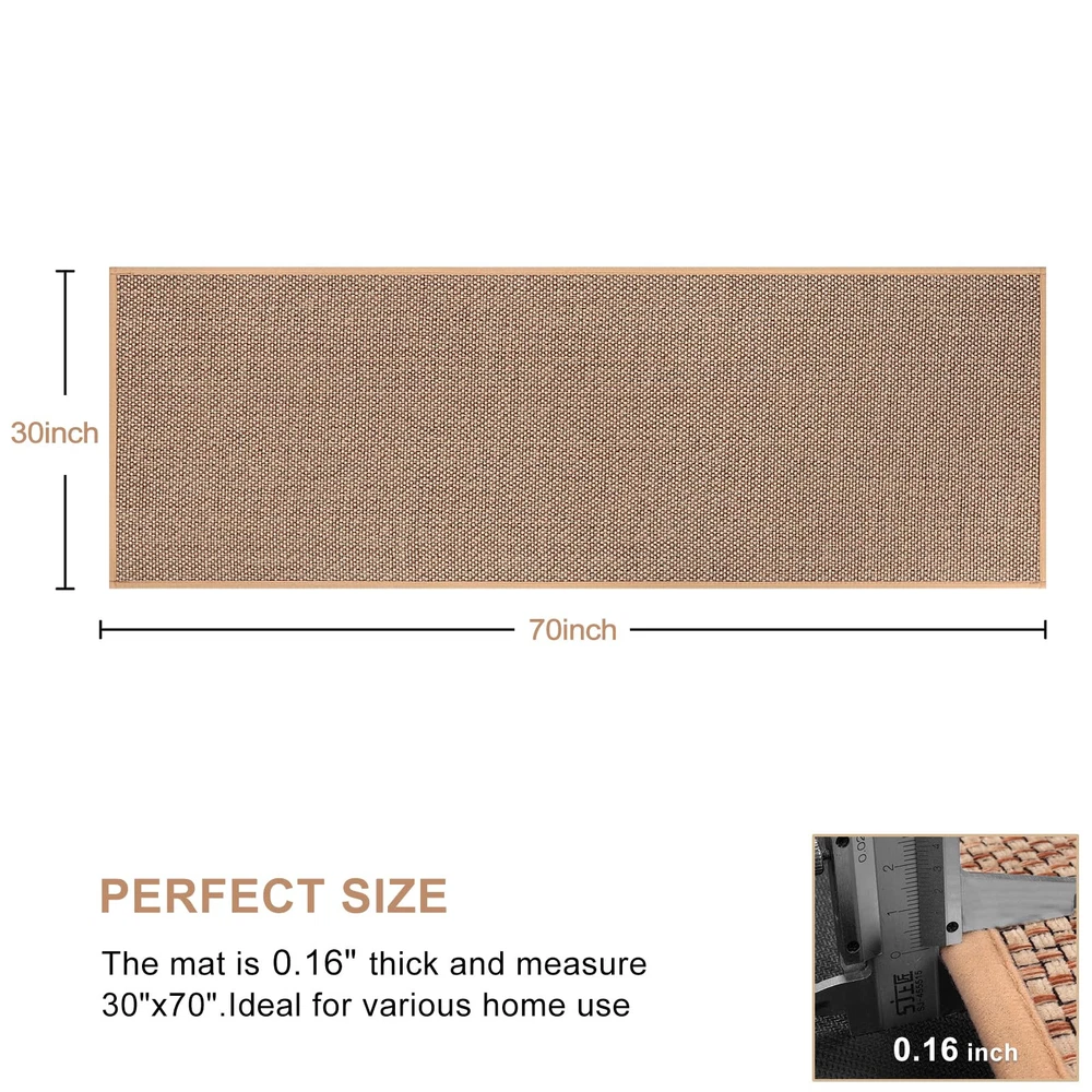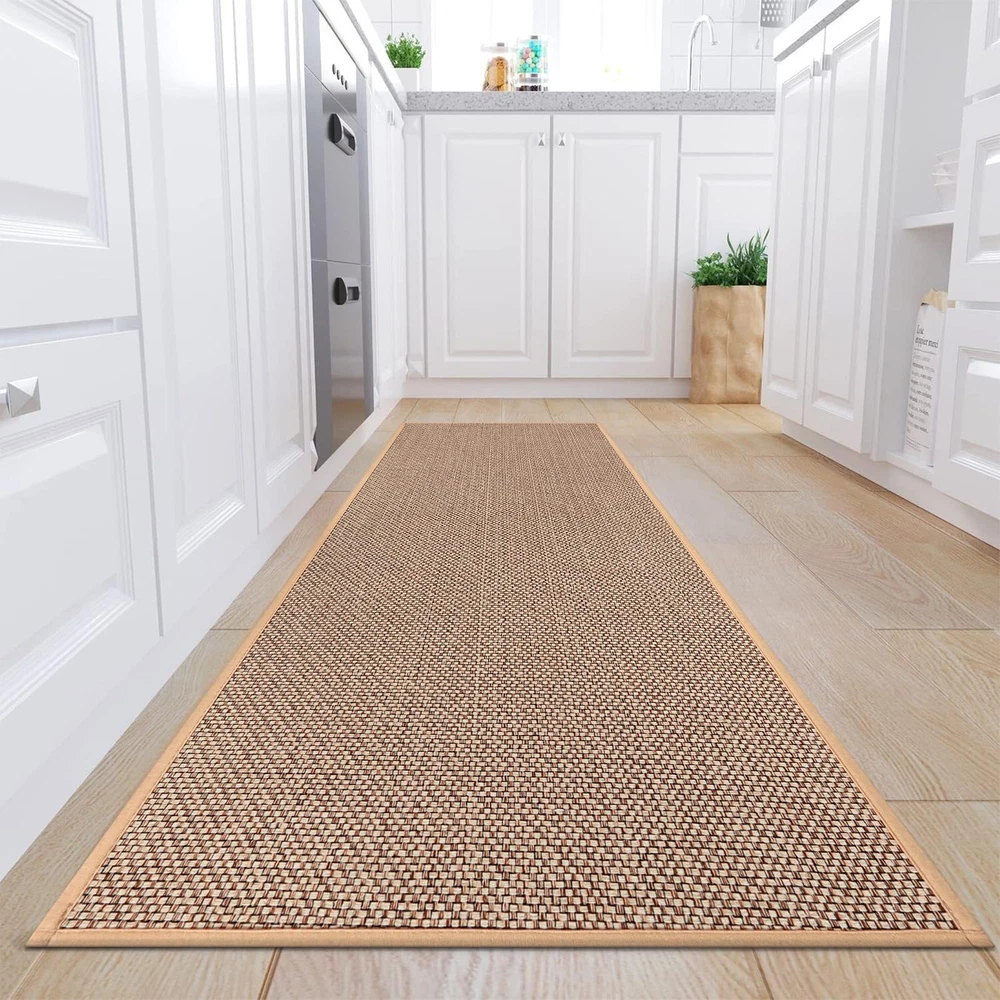 Non-Slip Kitchen Mat: Natural kitchen mats with super non-slip rubber backing is suitable for tile, ,hardwood floors and other smooth surfaces,prevent you from slipping,provides safety for your family. NOTE:Rug should be placed on dry surface during use Absorbent Kitchen Rugs:The high-quality absorbent fiber fabric provide the kitchen mat set with strong water absorption performance,can perfectly absorb water,oil during the cooking process,can keep the kitchen floor clean for a long time,really suitable for high traffic cooking areas Easy to Clean: Premium chenille materials and rubber backing makes the kitchen rugs more stable, machine washable and vacuum cleaner multiple times friendly. Kitchen floor mat will not decompose and compress over time.Due to the flat-weave process, low-profile kitchen mats making cleaning easily,save your time and energy, a great kitchen helper Rustic Farmhouse Style: neutral colors are easy to match with kitchen decor,add warmth and rustic farmhouse style to your kitchen.The tight edging makes this carpet look more elegant without snagging, convenient storage and beautiful kitchen decoration Multi-purpose: 30 inch wide kitchen floor mat wider than most kitchen mats on the market, available in several sizes widely used for home decor, in front of sink, indoor front welcome mat,living room,hallway,back door,garden,laundry room and any other high traffic areas