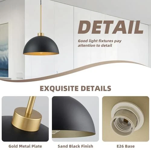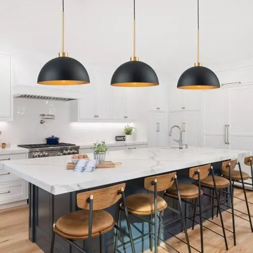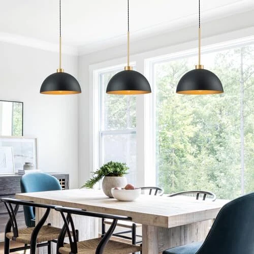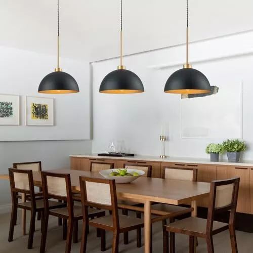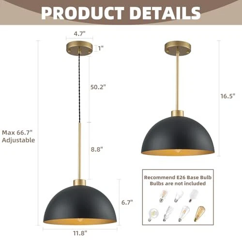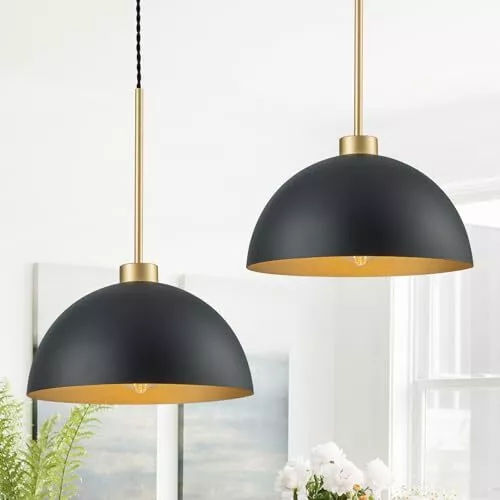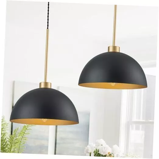Return Policy Fast Delivery Trusted seller Farmhouse Pendant Lights Kitchen Island, 2 Pack Black and Gold Dome Pendant Light Fixtures With Metal Shade, Industrial Hanging Pendant Lighting for Dining Room Entryway Foyer, Height Adjustable Product Description Farmhouse & Industrial Design: Black dome pendant light fixtures feature black and gold dome shades that made of durable metal material, not easy to rust, and last for a longtime use.This industrial pendant light matches various home styles that ideal for kitchen island, dining room, bedroom,living room,farmhouse, entryway, hallway,corridor, over sink,restaurant, cafe, bar, club. Ideal Dimension:Dome shade Dia:11.8 inch,H:6.7 inch; Ceiling Canopy Dia:4.7 Inch;with an adjustable rope. The hanging height of this black kitchen pendant lights can be adjusted from a minimum height of 16.5 inches to a maximum height of 66.7 inches.You can adjust the height to your preference to create the ideal atmosp. BULB REQUIREMENTS: Our farmhouse pendant lighting for kitchen need E26 base bulb(MAX 60W,110-120V), compatible with a variety of incandescent, LED, CFL and halogen bulbs.When using dimmer and dimmable bulb can be dimmed(Bulbs and dimmers are not included). Easy Installation:The black kitchen pendant lighting over island is very wasy to install,all you need to do is connect the wires and install the bulbs, which only takes a few minutes.All instructions and mounting hardware are included in the package for a quick install. After-sale Service: This island lights for kitchen island includes a 1-year warranty. If you have any questions about our 2 packs pendant lighting for kitchen island, please contact us freely. We are committed to providing you with friendly and satisfactory service. Shipping Returns Payment Shipping Shipping is FREE to all addresses other than APO/PO boxes in the lower 48 states. All our stock ships from US-based warehouses. Shipped via USPS or UPS (depending on location and package weight) Unless stated otherwise, all orders will ship within 24-72 hours of your payment being processed. Check our feedback to see the great reviews of FAST shipping we offer. Returns Seller does not accept returns Payment We currently accept payment via eBay managed payments only. Once payment is cleared, we will dispatch your shipment within 1-3 business days. Please refer to the "Shipping" tab for more information regarding shipping speed to your destination.