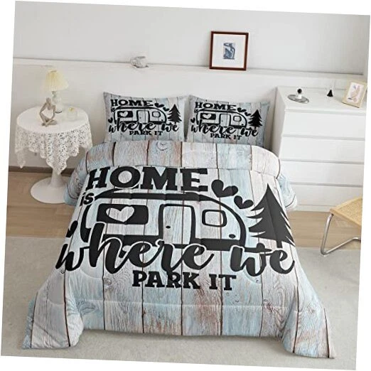 Return Policy Fast Delivery Trusted seller Farmhouse Rustic Camping Comforter Sets Full Size,Funny Home Where We Park It Bedding Comforters for Girls Teens,Explore Camper Gifts RV Life Down Alternative with 2 Pillowcases, Ultra Soft Product Description What You Can Get: 1 x Full Down Comforter 79"x 90", 2 x Pillow Cases 30"x 20". Special Stitching Technique: U shaped convoluted sewing technology,the quilt is sewn more tightly,and the inner fibers are more evenly stretched prevents fill from clumping or shifting. Unique Design: Our bedding print collections used by latest popular 3d digital printing patterns satisfy all kinds of home decoration styles including antique, vintage, modern, western, Gothic or fashion style, etc. Easy Care: Machine washed in cold water. Do not bleach, Tumble dry low. Not fading and pilling. Soft breathable and lightweight. The comforter is vacuum packed, it may be some wrinkles when come out of the bag. Put it in the sun and tap gently for a few times for fluffy. Multipurpose: The comforter is not very heavy, but still provides enough warmth. Perfect quilted duvet for spring, summer, autumn, winter. Order 1 set and use all season. Use as quilt, bedspread, blanket, bed cover. And we have many styles of patterns to choose from, suitable for all boys, girls, men and women. Shipping Returns Payment Shipping Shipping is FREE to all addresses other than APO/PO boxes in the lower 48 states. All our stock ships from US-based warehouses. Shipped via USPS or UPS (depending on location and package weight) Unless stated otherwise, all orders will ship within 24-72 hours of your payment being processed. Check our feedback to see the great reviews of FAST shipping we offer. Returns Seller does not accept returns Payment We currently accept payment via eBay managed payments only. Once payment is cleared, we will dispatch your shipment within 1-3 business days. Please refer to the "Shipping" tab for more information regarding shipping speed to your destination.