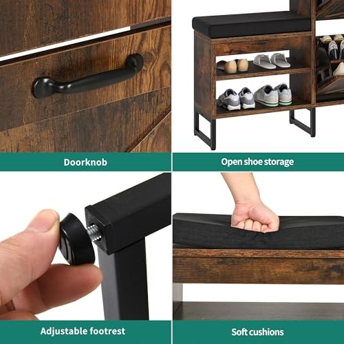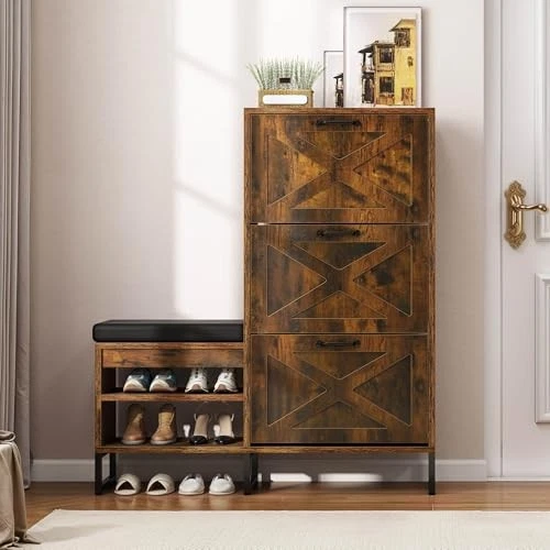 Return Policy Fast Delivery Trusted seller Farmhouse Shoe Cabinet with 3 Flip Drawers for Entryway, Shoe Storage Cabinet with Shoe Bench, Narrow Slim Shoe Rack Organizer for Entrance, Living Room, Hallway, Rustic Brown Product Description Engineered Wood Tidy Up Your Entryway: Step into a tidy space every time you come home. Our shoe cabinet blends a comfortable bench with smart storage, letting you sit on the plush cushion, kick off your shoes, and slide into relaxation as you organize your footwear Ample Hidden Storage: Keep your growing shoe collection neatly organized in 3 flip drawers with hidden compartments. Adjustable shelves inside let you customize the space, ensuring everything from sneakers to boots has their spot Adaptable Style: This entryway shoe cabinet was designed in warm white, rustic brown, and vintage coffee, this shoe cabinet complements any decor. Whether your style is modern, farmhouse, or vintage, it seamlessly fits into your home's aesthetic Sturdy & Safe Construction: Crafted from sturdy engineered wood with square steel legs, our shoe organizer offers stability wver it stands. The included non-tipping kit ensures extra security, giving you peace of mind Effortless Assembly: Assembling this hidden shoe cabinet a breeze with clear instructions and labeled parts. Plus, with a dedicated team ready to assist with any questions, you’re sure to enjoy a smooth shopping experience from start to finish Shipping Returns Payment Shipping Shipping is FREE to all addresses other than APO/PO boxes in the lower 48 states. All our stock ships from US-based warehouses. Shipped via USPS or UPS (depending on location and package weight) Unless stated otherwise, all orders will ship within 24-72 hours of your payment being processed. Check our feedback to see the great reviews of FAST shipping we offer. Returns Seller does not accept returns Payment We currently accept payment via eBay managed payments only. Once payment is cleared, we will dispatch your shipment within 1-3 business days. Please refer to the "Shipping" tab for more information regarding shipping speed to your destination.