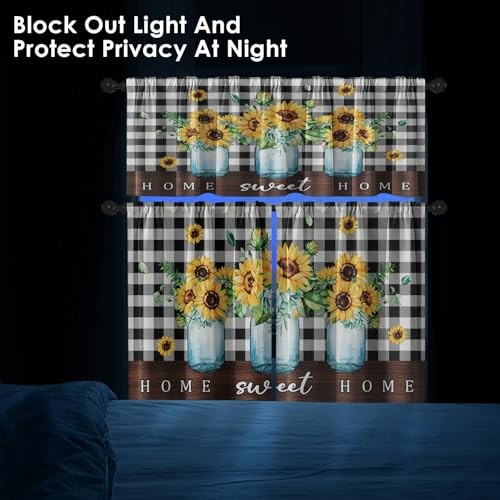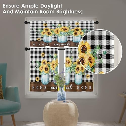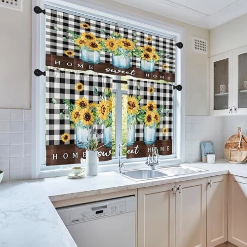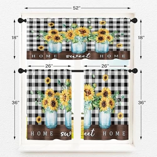 Return Policy Fast Delivery Trusted seller Farmhouse Sunflowers Kitchen Window Curtains Valance and Tier Set 36 Inch, Home Sweet Home Country Rod Pocket Short Tier Curtain for Bathroom, Summer Small Cafe Drapes for Kitchen Decor Product Description 3 Pieces Set Size: 1 piece of valance 52" x 18" and 2 pieces of kitchen curtains 26" x 36"(each). High Quality Material: The kitchen curtains and valances set are made of polyester. The material is soft to the touch and does not wrinkle easily. Safe and harmless. The Role of Kitchen Curtains: Kitchen curtains are perfect for privacy and light reduction, it helps to reduce noise and heat. Protect your furniture from color fading, providing privacy in your place. Home Decor Multiple Uses: Different patterns curtains will decorate your windows and rooms with new great effect, suits for contemporary, traditional, vintage rustic home styles. Suitable for kitchen, living room, bedroom, children's room, study room, etc. Also a great gift option. Easy Care: Machine washable for easy care and maintenance, use only non-chlorine bleach when needed, tumble dry low and warm iron as needed. Shipping Returns Payment Shipping Shipping is FREE to all addresses other than APO/PO boxes in the lower 48 states. All our stock ships from US-based warehouses. Shipped via USPS or UPS (depending on location and package weight) Unless stated otherwise, all orders will ship within 24-72 hours of your payment being processed. Check our feedback to see the great reviews of FAST shipping we offer. Returns Seller does not accept returns Payment We currently accept payment via eBay managed payments only. Once payment is cleared, we will dispatch your shipment within 1-3 business days. Please refer to the "Shipping" tab for more information regarding shipping speed to your destination.