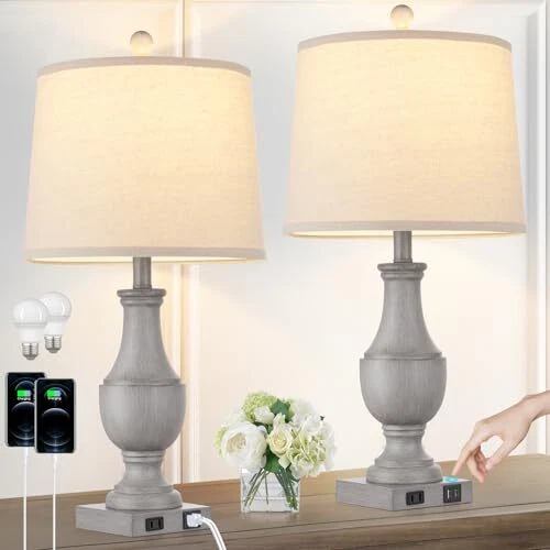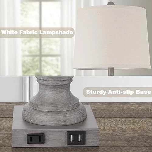 Menu 1. We require immediate payment. 2. We currently accept payment via eBay managed payments only. 3. Once payment is cleared, we will dispatch your shipment within 1-3 business days. Please refer to the "Shipping" tab for more information regarding shipping speed to your destination. Farmhouse Table Lamps Set of 2, Rustic 25" Touch Control Bedside Lamps with 2 USB Ports & AC Outlet, Vintage 3-Way Dimmable Nightstand Lamp Linen Fabric Shade for Living Room Bedroom End Table Decor Product description ✔ Farmhouse Rustic Retro Table lamps: Bedroom lamps crafted with antiqued gray resin and linen fabric lampshade, boasting unique vintage-inspired textures that offers charmingly retro aesthetic appeal. The classic design of lamps lends elegant and sophisticated touch to home space, allowing to complement various styles, including nordic, simple, country and minimalist. This farmhouse table lamps make perfect for end tables, desks, beside sofas and dressers, bring a high-quality home lifestyle. ✔ Dual USB Charging Ports & AC Outlets: This bedside lamps features two practical built-in 5V/2.1A USB ports and AC outlet, allowing to effortlessly charge your mobile phones, Kindle, Apple Watch, tablets, laptops, headphones, and other electronic devices. you can easily power up without the hassle of a tangled mess of cables and adapters cluttering your desk. The fast-charging function remains active whether the lamps is on or off, making convenient and simple to daily life! ✔ 3-Way Dimmable Touch Control: Nightstand lamps equipped with sensitive touch sensors offers three levels of brightness (low, medium, high), it takes is a gentle tap on the base touch switch to adjust illumination. Low light brightness for sleeping and relaxation, switching to medium or high light brightness for reading and productive working. No more searching for the switch in the dark and easily turn it on or off, making it perfect for your living room, bedroom, nightstand, and end table. ✔ Energy-saving LED bulbs & Eye-Friendly Light: Enjoying a soothing and eye-caring lighting experience courtesy of rustic table lamps. The linen crafted fabric shade diffuses the cozy light, ideal to read, study, work, or relax for extended periods. Includes two energy-efficient LED bulbs that provide a warm white light at 2700K and delivering 800 Lumens without flickering or buzzing. With its safety, eye-friendly illumination, this table lamp brings comfortable atmosp to your home! ✔ Perfect Choice for Decor & Ideal Gift: With its cozy light and vintage-inspired design, the table lamps set of 2 is ideal for living rooms, bedrooms, offices, dorms, nursery, and other spaces, making for elevating your room decor and suiting for adorning country cottages or farmhouse-style interiors. This vintage table lamps serves as an thoughtful gift for your family and friends on special occasions such as birthdays, Christmas, New Year's, and other celebratory moments. PLEASE MESSAGE US IF YOU HAVE ANY OTHER QUESTIONS, AND MANY THANKS FOR READING ALL OF THIS. Copyright ©#. All Rights Reserved.