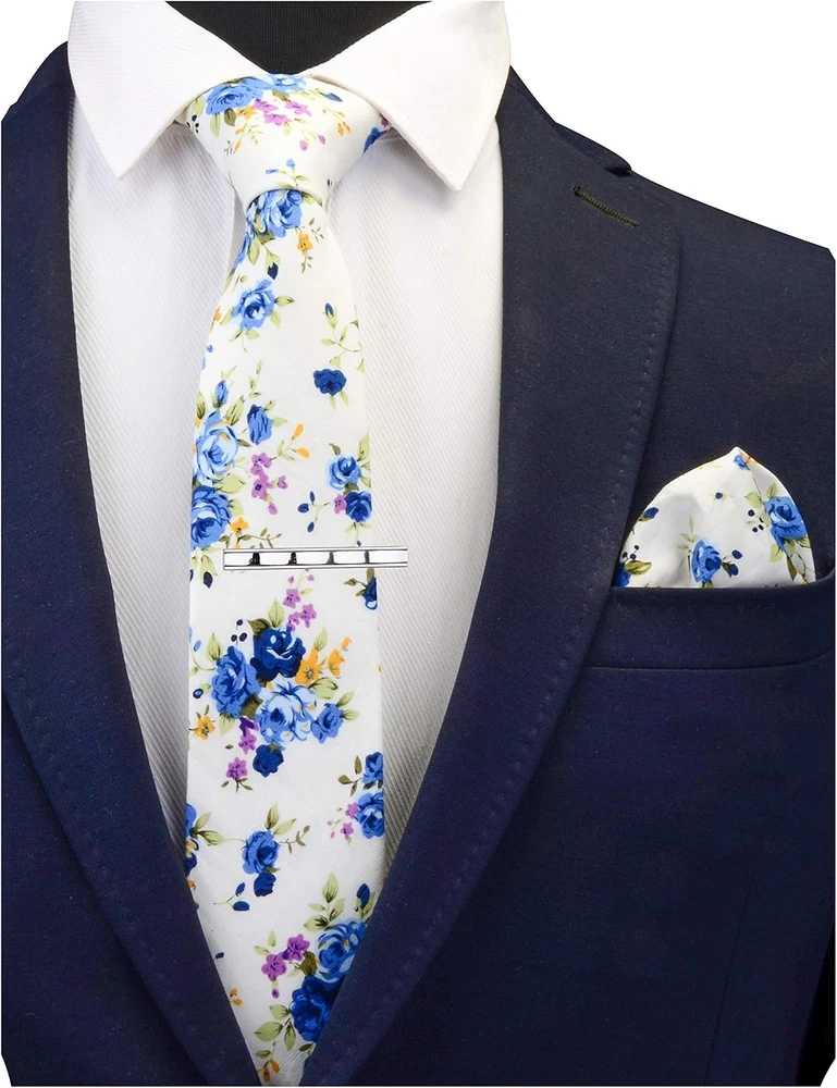 Product Description GUSLESON store welcome your arrival! We focus on ties for many years.In our store, we have many other styles (silk ties,bow ties,handkerchiefs,tie sets,etc.) for sell which are bound to meet your needs, you can click our brand name GUSLESON to choose.Our products are famous for their comfort, durability and design.Because of the reliable quality, our products have been highly favored of the majority of customers.Besides they also would be perfect gifts or excellent additions to your wardrobe. Suitable for most occasions Business, Party, Dating, Wedding, Graduation, Dinner, Ceremony. Holiday Gifts: Father's Day, Christmas, Graduation ceremony, Wedding anniversary, Halloween, Thanksgiving Day ect Floral tie, representing youth and vitality,You will like it Suits with tie of various flower , make you better in different occasions Floral Tie Clip and Pocket Square Sets Fashion Design Brand:GUSLESON Material: Made by cotton. Tie size:58x2.4x1.4 inches (148cmx6cmx3.5cm) Handkerchief size: 8.7 inches x 8.7 inches(22cm x 22cm) Item weight:0.16 lb(70g) Package include:tie,handkerchief,clip Dry clean only 1200 Needles & Hard-wearing Quality Its unique supple texture is quite comfortable to wear and to touch Wearing such a good tie, you will make a good and deep impression on others Please read the notes before buying It is normal for the picture of the product to have a little color difference with the real object.After all, different displays of the color will look different. In addition,there is the influence of lighting when taking photos.Different cameras will take the same things with different colors,Please refer to the actual object you received. About Product Due to manual measurement, there may be 1-2 cm error of the physical. As different screens display colors differently, the color of the actual item may vary slightly from the above images.