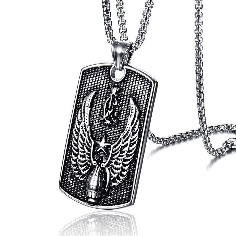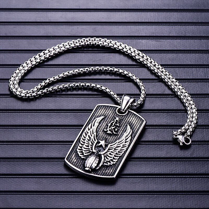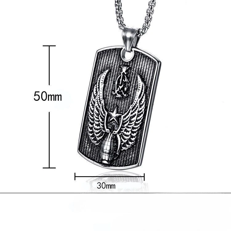 Brand: Cy trendy Material (Pendant): 316L Stainless Steel Material (Chain): 316L Stainless Steel Chain length: 60cm Pendant Size: 30mm*50mm Total Weight: 50g We offer high quality rings by using GENUINE 316L Stainless Steel as material, T he 316L stainless steel do not suffer corrosion,tarnish or rust when expose in wet enviroment, i t is one of the best metal when choosing rust resistance rings and necklaces because of t's sufficiently reactive to protect itself from further attack by forming passive corrosion product layer Package include 1 x pendant necklace