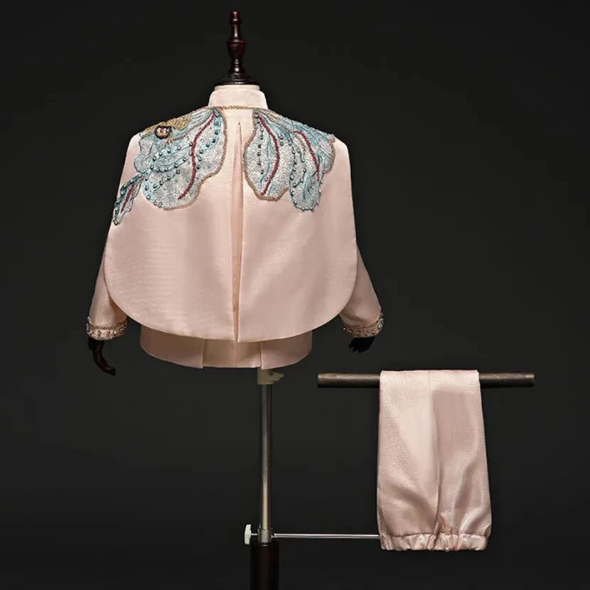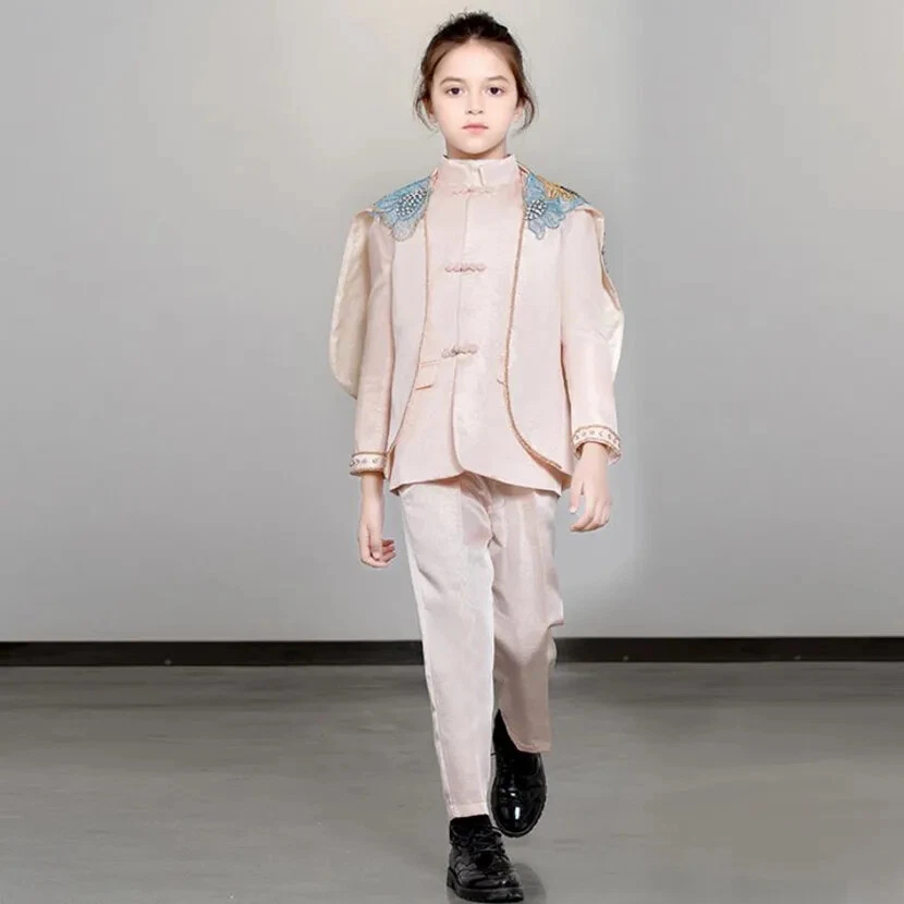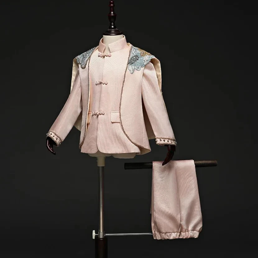 Fabric Type: Blended Fabric Sleeve Length(cm): Full Collar: O-Neck Closure Type: Single Breasted Country/Region of Manufacture: China Gender: Boys Sleeve Style: regular Season: Fall, Spring, Summer Department Name: Children Department: Boys Garment Care: Hand Wash Only Pattern Type: Solid Jacket/Coat Length: Regular Occasion: Party Handmade: Yes Number of Pieces: 3 Piece Vintage: Yes Fit: Regular Model Number: A2157 Item Type: sets Features: shawl Size: 90-150 Type: Suit Set Jacket Front Button Style: Three-Button Brand: Fashion Style: Tuxedo Sleeve Length: Long Sleeve Theme: Angel, Birthday, Wedding Material: Polyester Set Includes: Jacket, Pants, shawl Lining Material: Polyester Pattern: Solid Jacket Cut: Single-Breasted Outerwear Type: coat Jacket Lapel Style: Shawl
