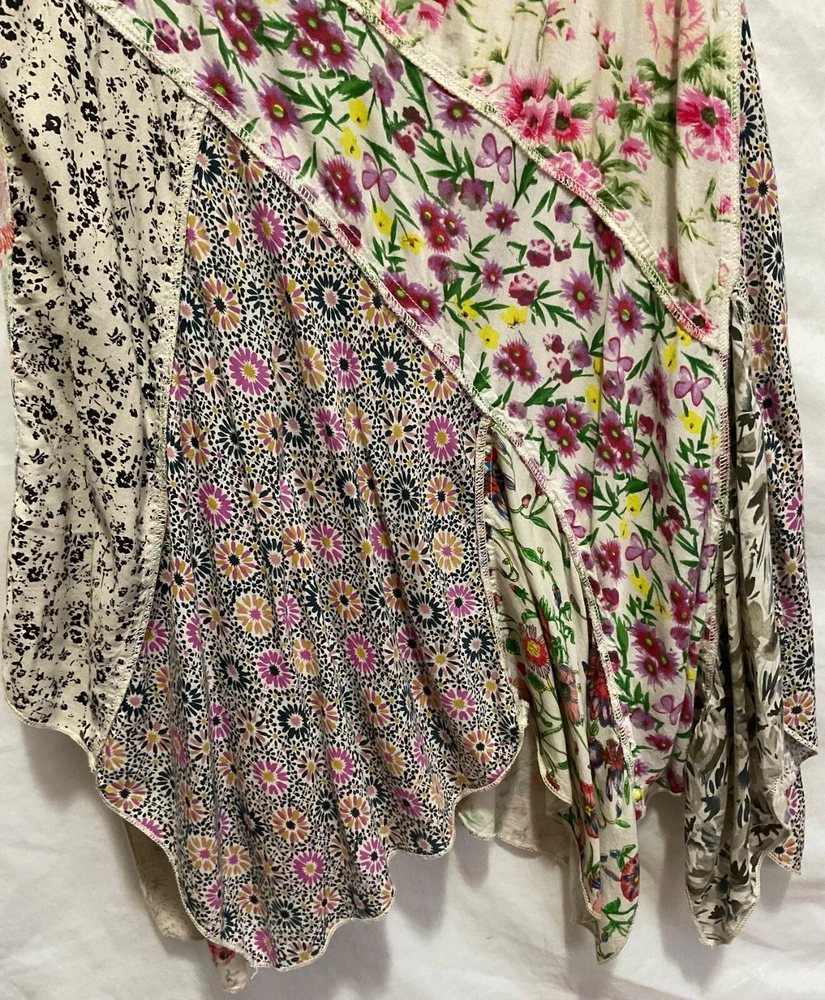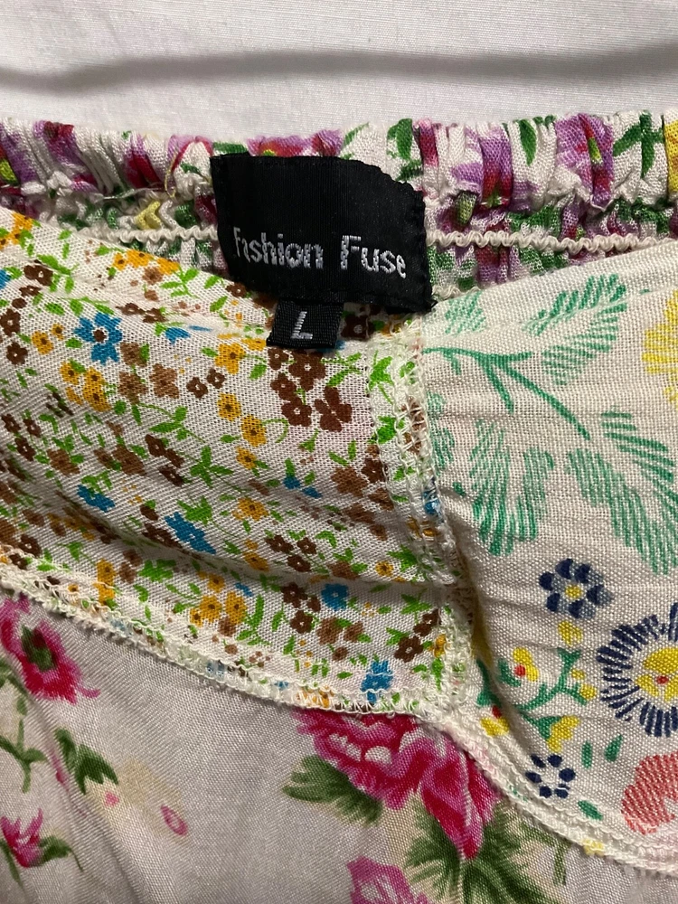 This is a Fashion Fuse Bohemian Style Maxi Skirt in size L. The skirt features a colorful and vibrant multicolor pattern, making it a stylish choice for women who appreciate bohemian fashion. With a long length, this skirt is perfect for creating a flowing and relaxed look. Ideal for casual or dressed-up occasions, this skirt is a versatile addition to any wardrobe. Please refer to photos for measurements Ty