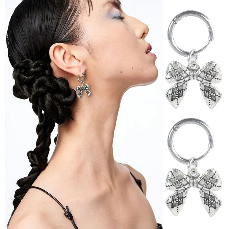 Features: Made from alloy materials, these bowknot earrings is lightweight and hypoallergenics, ensuring a comfortable fit for all day wear. for fashion forward individuals who love to show their unique These earrings is a great accessory for those who want to stand out from the crowd. Whether it is for casual outings, parties, or date these earrings is versatiles enough to enhances any outfit. They add a bright of color and fun to elevates your overall look. With their eye catching shape, these earrings add a touch of charm to any outfit. Add a touch of uniqueness to your accessory collection with these earrings. Their exquisites designs and attention to detail make them a choice for anyone looking to show their distinct personality. Specifications: Alloy Color: Silver Size: As shown in the picture Package Includes: 1pair Earrings note: Please allow 1-2cm errors due to manual measurement, make sure that you do not mind before you order. Due to the difference between different monitors, the picture may not reflect the actual color of the item.