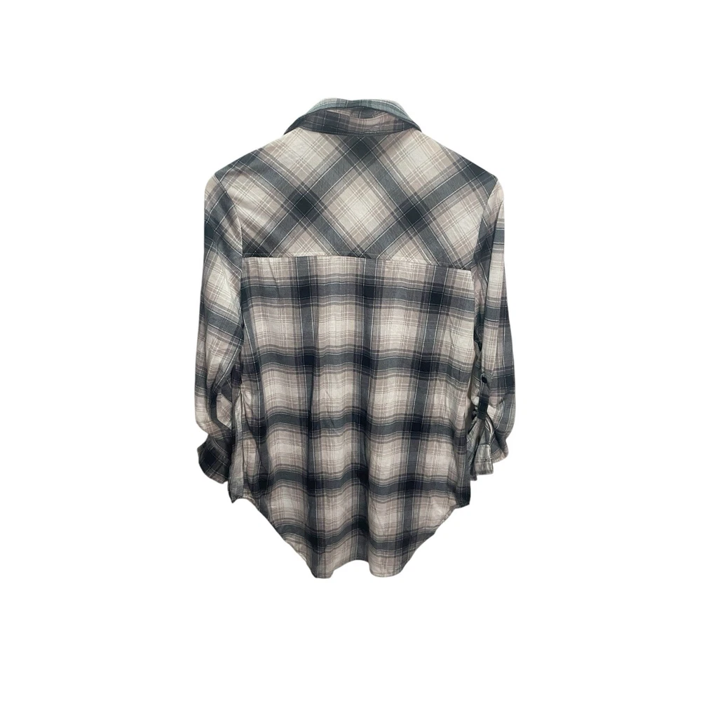 This Fashion Nova shirt is perfect for any occasion! With its blue, white, and gray plaid pattern and long sleeves, it's a stylish addition to any woman's wardrobe. The button-up design and collared neckline add a touch of sophistication, while the casual sleeve type and regular fit make it comfortable for all-day wear. The shirt is available in size M and is made for women. Its brand name is Fashion Nova, and the character it features is Nova. The shirt is perfect for those looking for a versatile and fashionable addition to their wardrobe. in very good condition length 22" chest width 17" All Measurements Are Approximate Please email us with any questions! ** LIKE THE ITEM BUT NOT THE PRICE, REASONABLE OFFERS ACCEPTED