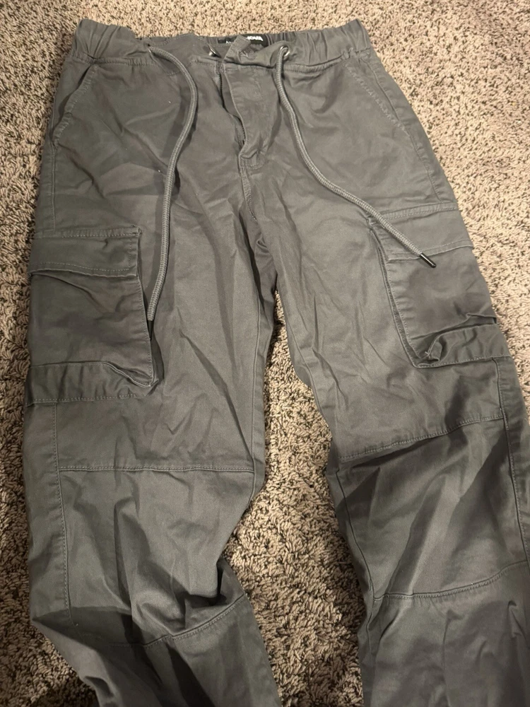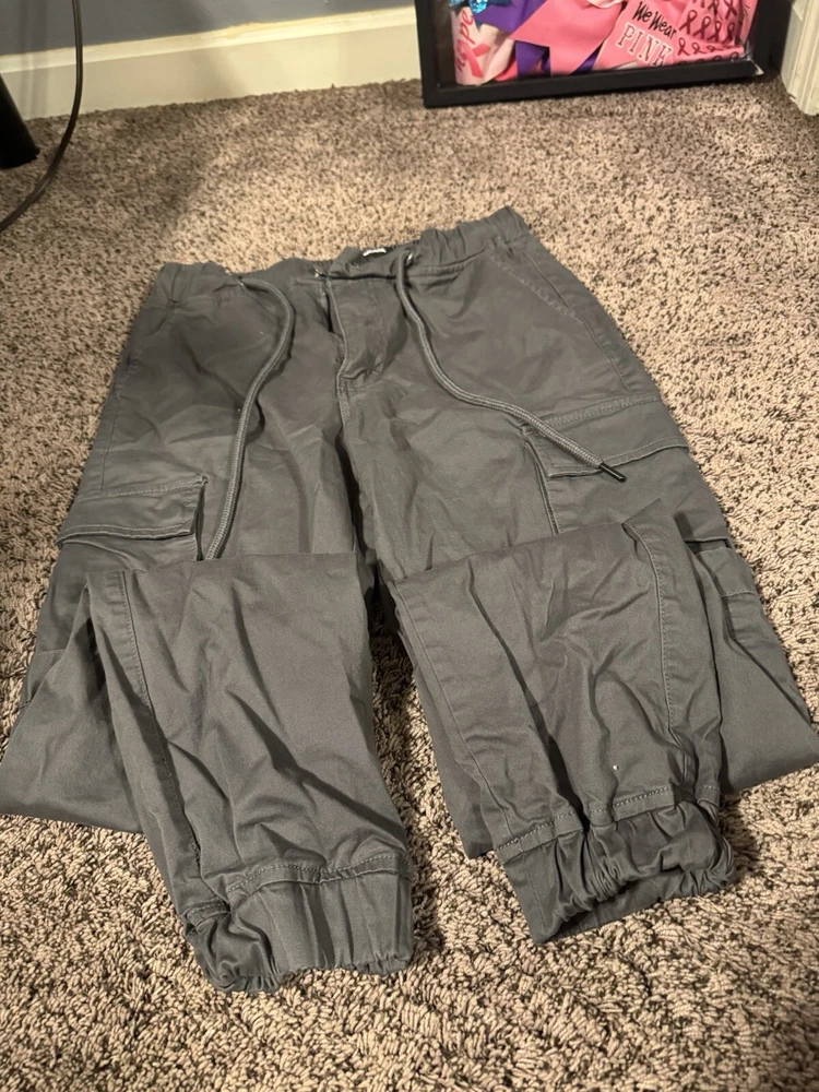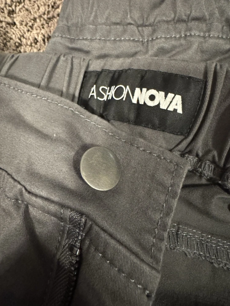 Elevate your casual style with these trendy cargo pants from Fashion Nova. Designed with a solid gray pattern and made from a blend of spandex and cotton, these pants offer a comfortable and stretchy fit that's perfect for everyday wear. The lightweight fabric type of canvas ensures breathability and ease of movement. Featuring a drawstring and button closure, these pants are accented with buttons and zippers, adding a touch of edginess to the design. The cargo style is perfect for outdoor activities and the pants come equipped with convenient pockets for storing essentials. These pants are a must-have for any fashion-forward woman who loves comfort and style.