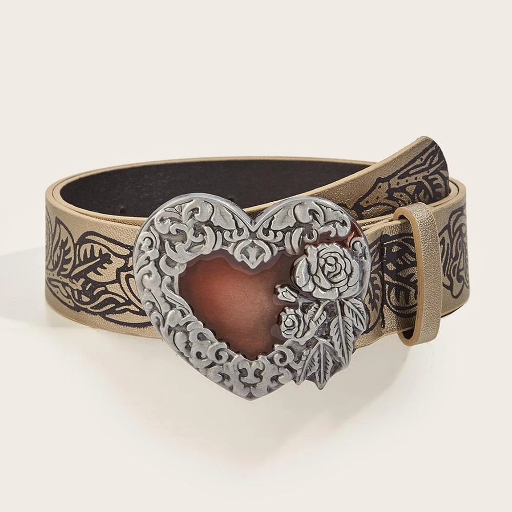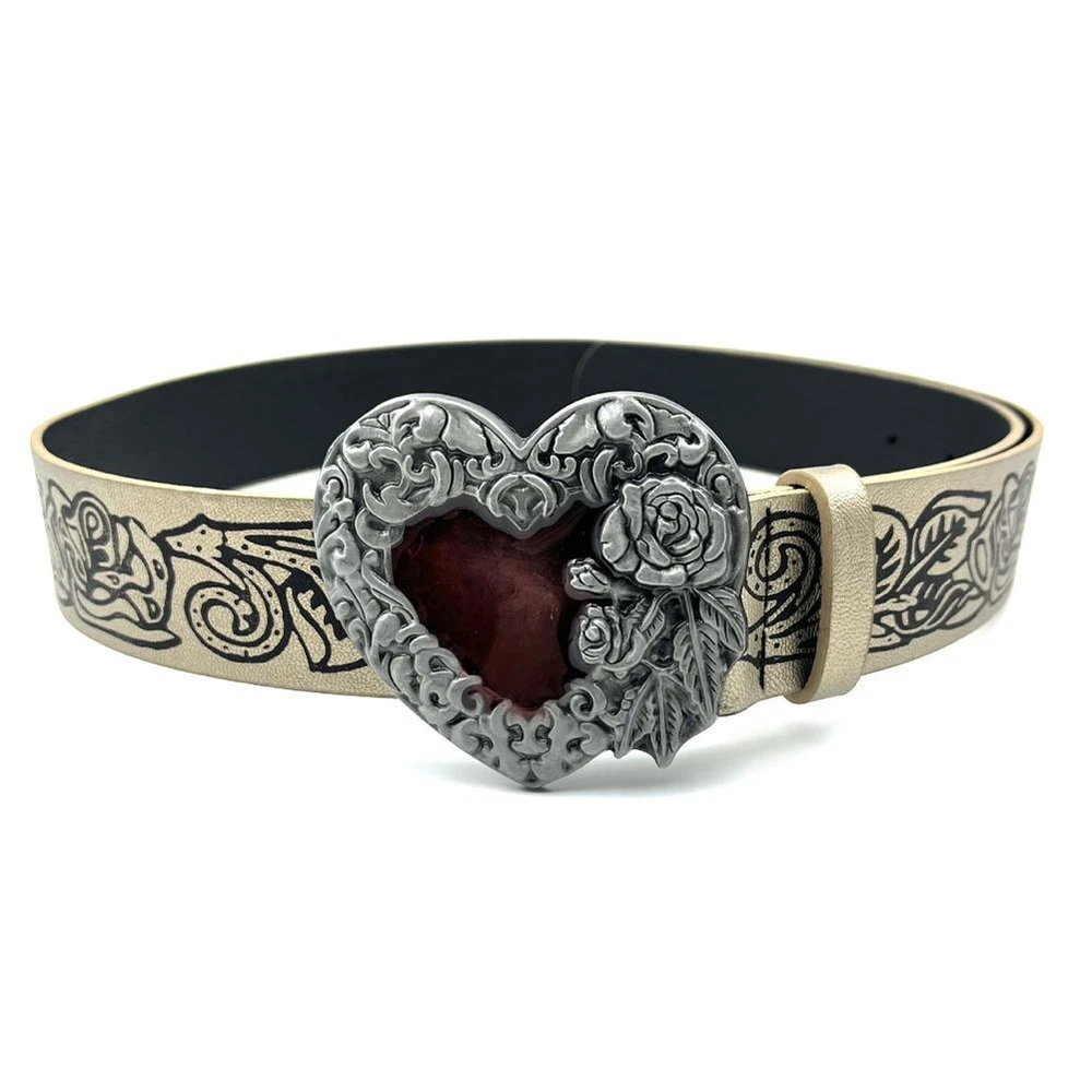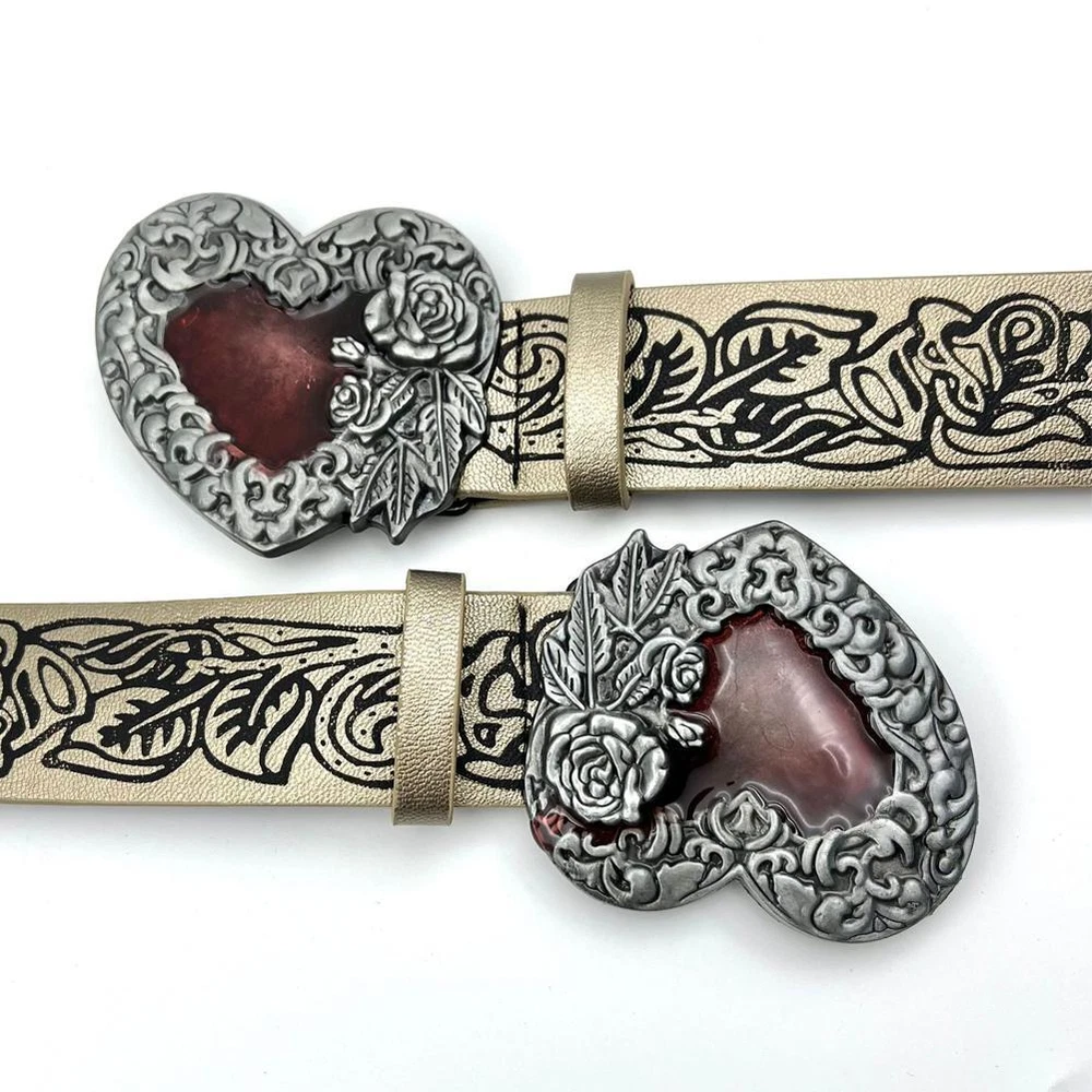Fashion Punk Love PU Leather Women's Belt Gothic Black Rose Embossed Belt B1E х)