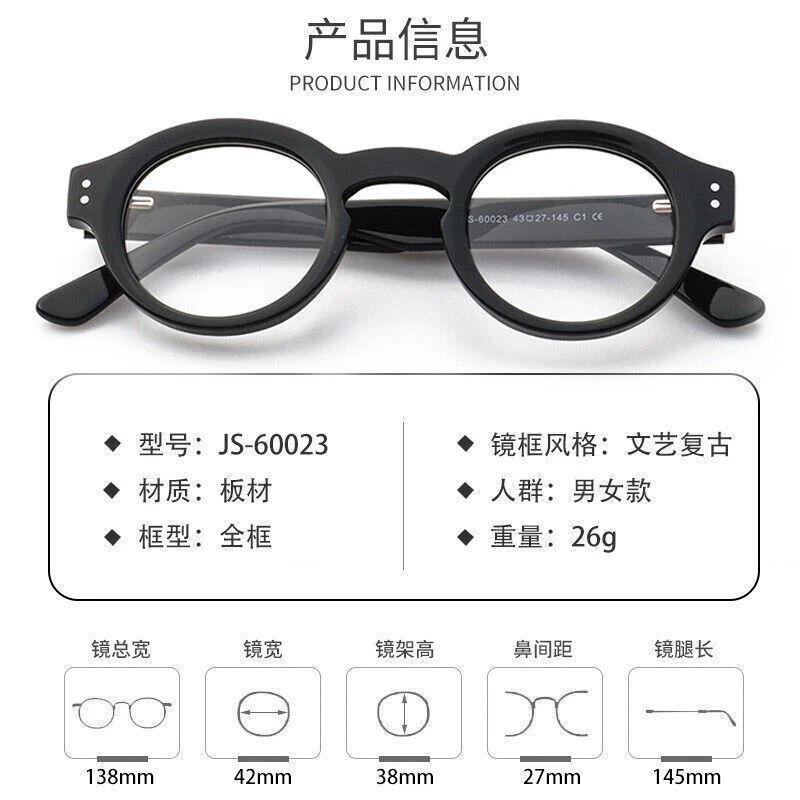 Frame Material: Acetate Brand: maiglass Features: Full Rim Vertical: 37 mm UPC: Does not apply Year Manufactured: 2020-2029 Pattern: Solid Style: Round Frame Color: Black Vintage: Yes Personalized: Yes Bridge Width: 27 mm Department: Unisex Adults gtin13: Does not apply Character: Vision Theme: Retro Lens Socket Width: 43 mm Country/Region of Manufacture: China Type: Eyeglasses MPN: Does Not Apply Temple Length: 143 mm
