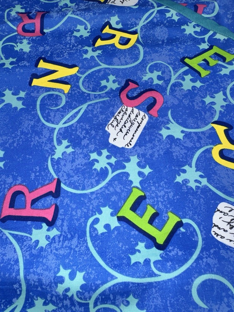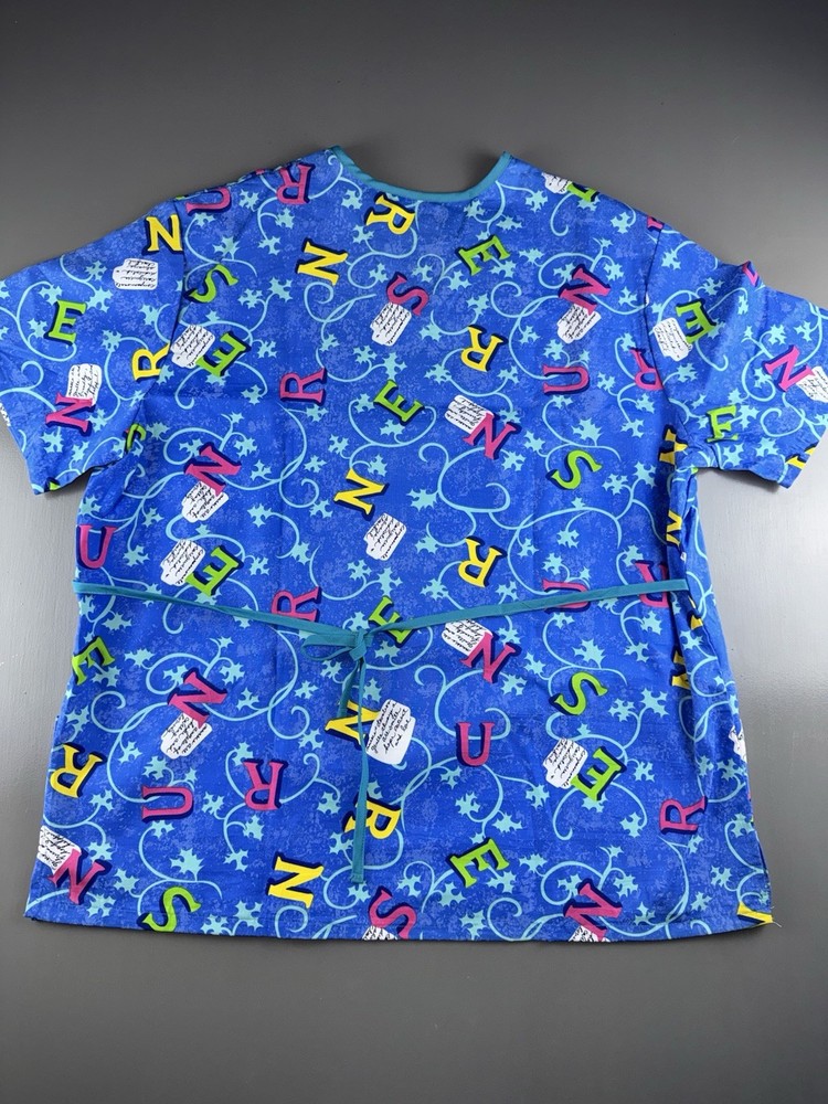 The Fashion Scrubs Women’s Mock Wrap Scrub Top in 3XL is a colorful and playful addition to any woman's medical uniform collection. Made from a comfortable cotton blend material, this top features a patterned design with scattered nurse letters, adding a fun and personalized touch. The mock wrap design gives the top a stylish and flattering look, while the multi-color palette adds a vibrant pop of color to any healthcare setting. Designed in the United States, this top is perfect for women looking to stand out in the medical industry with a fashionable and functional piece of clothing.