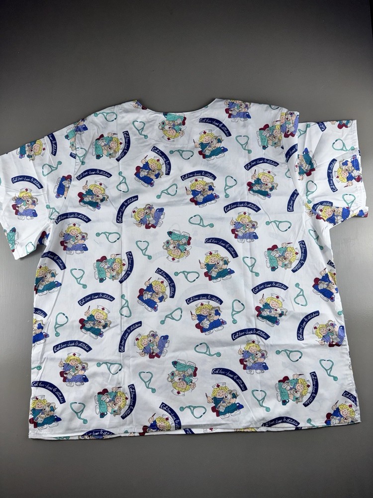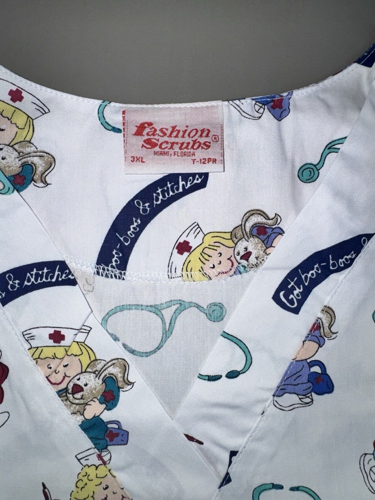 Fashion Scrubs Women’s V Neck Scrub Top Size 3XL Cute Nurse Design Stitches