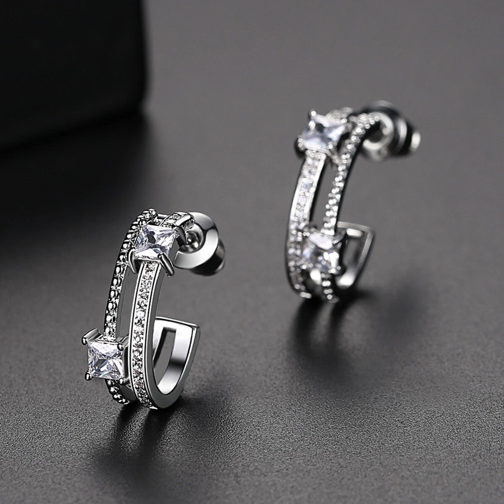 Main Stone Shape: Square Style: Cuff Country/Region of Manufacture: China Closure: Clip-On Main Stone Color: White/Colorless Brand: Unbranded Wholesale: No Main Stone: Cubic Zirconia Main Stone Width: 0.5 mm Era: Undated Color: White Gold Signed: No Item Length: 15 mm Ear Area: Auricle Features: Nickel-Free Main Stone Treatment: Unknown Main Stone Length: 0.5 mm Seller Warranty: No Occasion: Anniversary, Birthday, Christmas, Valentine's Day Number of Gemstones: 4 Cut Grade: Excellent Base Metal: Copper Material: Metal Handmade: No Secondary Stone: No Stone Type: Earrings Customized: No Country of Origin: China Metal: Copper Metal Purity: Unknown Vintage: Yes Personalize: No Item Diameter: 15 mm Shape: Geometric Antique: No Theme: Fashion & Costumes Main Stone Depth: 0.5 mm Setting Style: Korea Style Main Stone Creation: Unknown