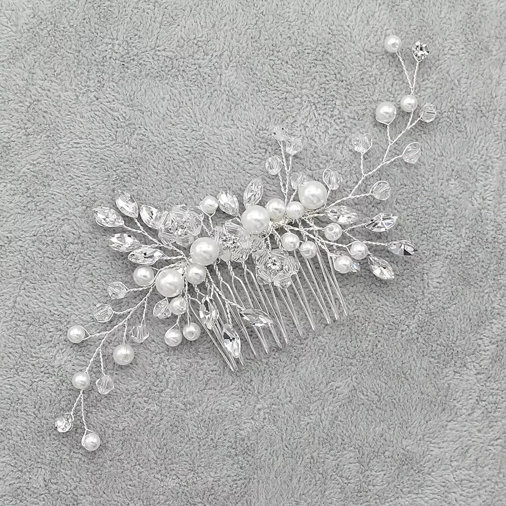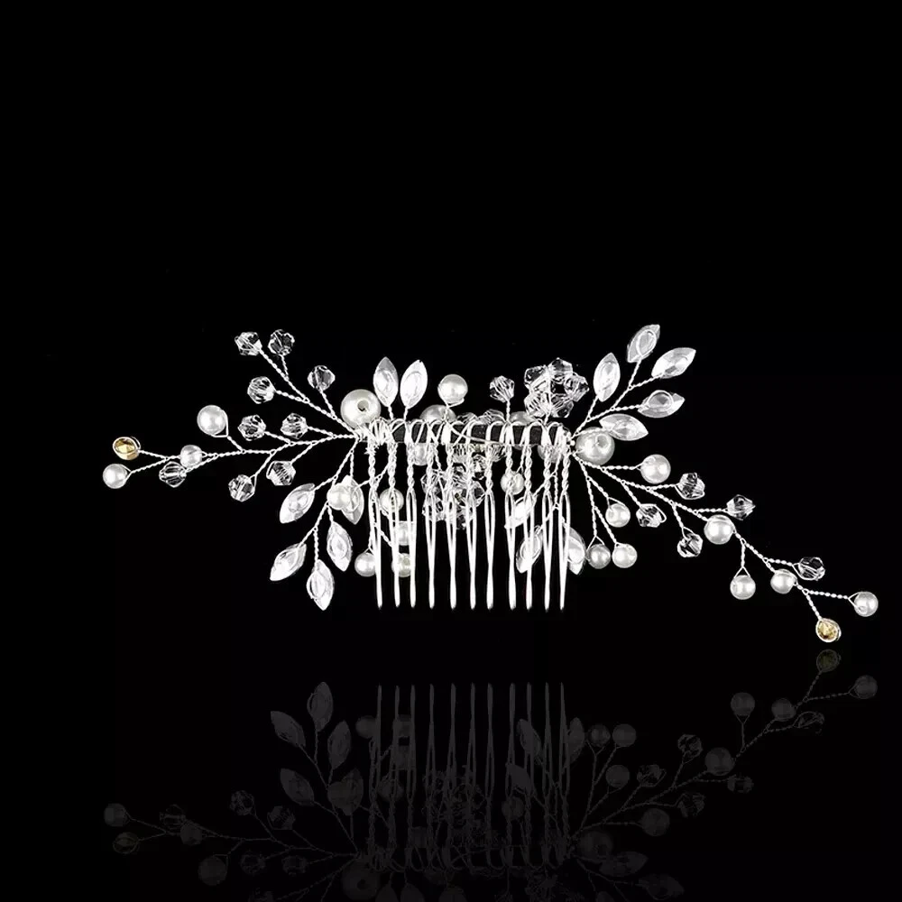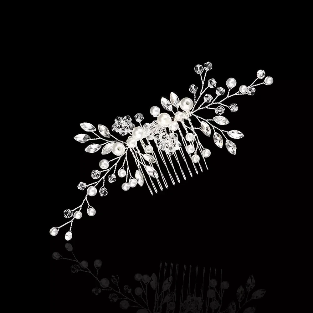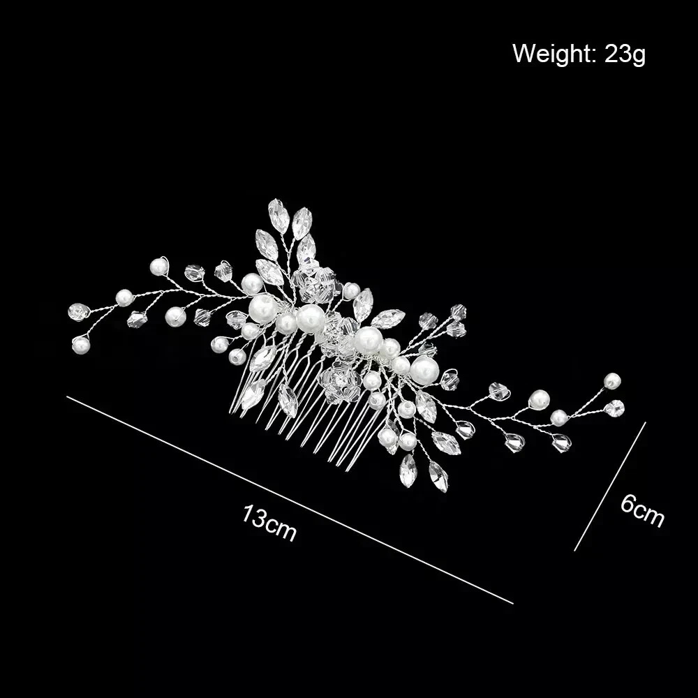 Description This bridal hair comb is made of pearl, and beautiful crystal. bride, bridesmaid, flower girls or wear it to a party. This exquisite designed hair comb and hairpins is a perfect alternative for headpiece such as crown, tiara or headband. Feature - The wedding hair accessories are suitable for any wedding party theme. Special for wedding, party, prom, party, engagement, anniversary or other special occasions. - Delicate crystal brings you a unique sense of beauty, leaving a deep impression. - Warm Tip: Dear buyer, due to lighting effect, monitor's brightness, manual measurement, etc., there could be some slight differences in the color and size between the photo and the actual item. Sincerely hope that you can understand! Thank you! - This headpiece would be a great choice for a bride or for any special occasion. Best gift choice for family, friends, and your girlfriend. - Delicate hair combs accessories for brides and bridesmaids, available in beautiful color. specification Category: Hair Accessories Style: Women's Material: Copper wire Size: 13*6cm Color: silver quantity: 1 Package includes: 1x Hairpin