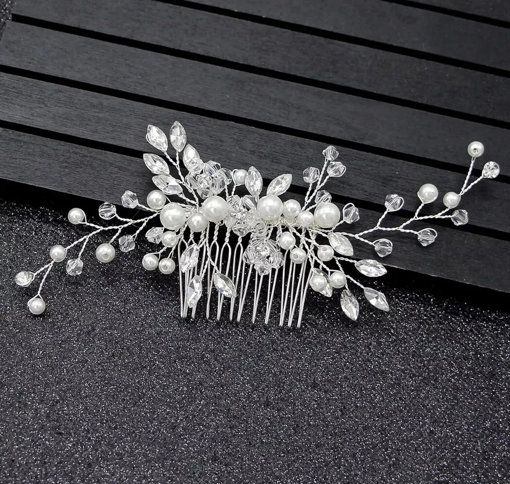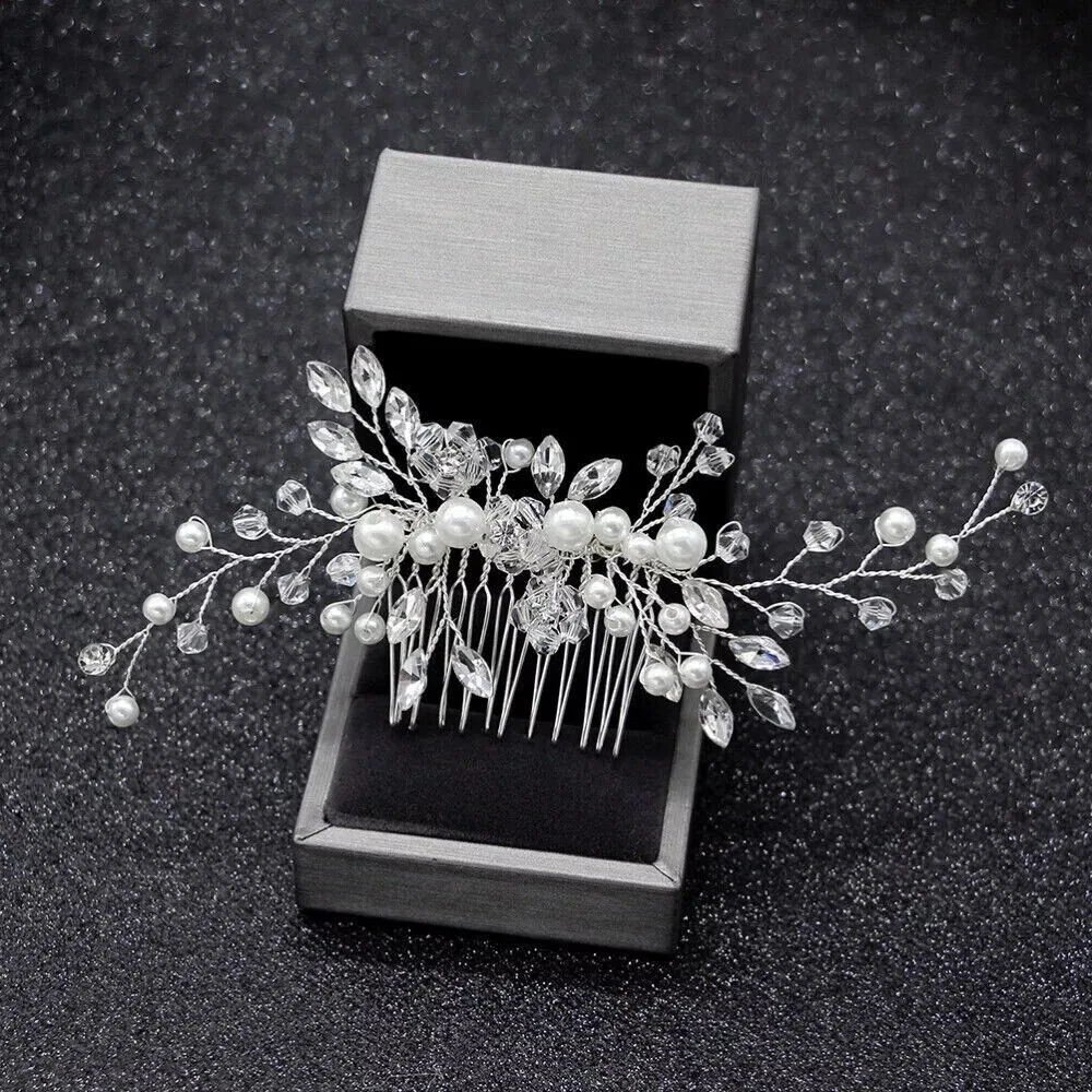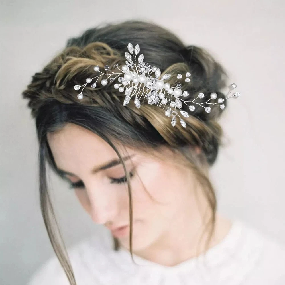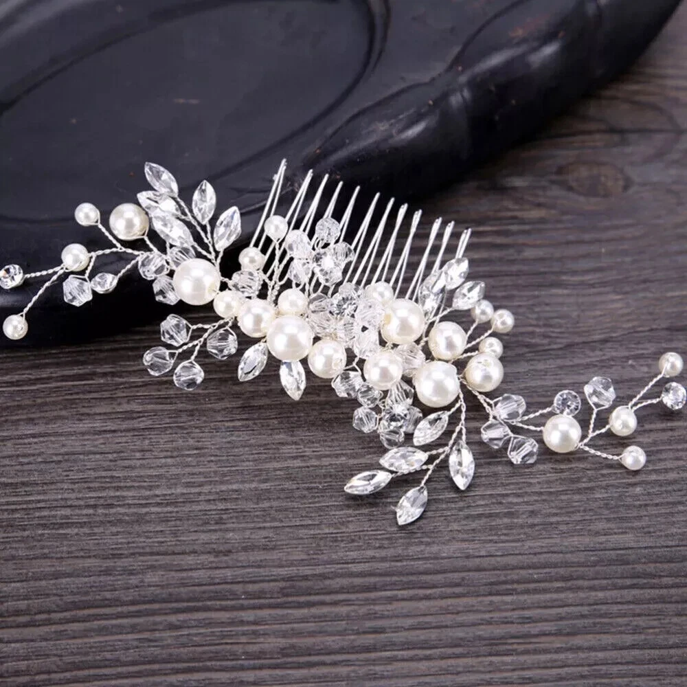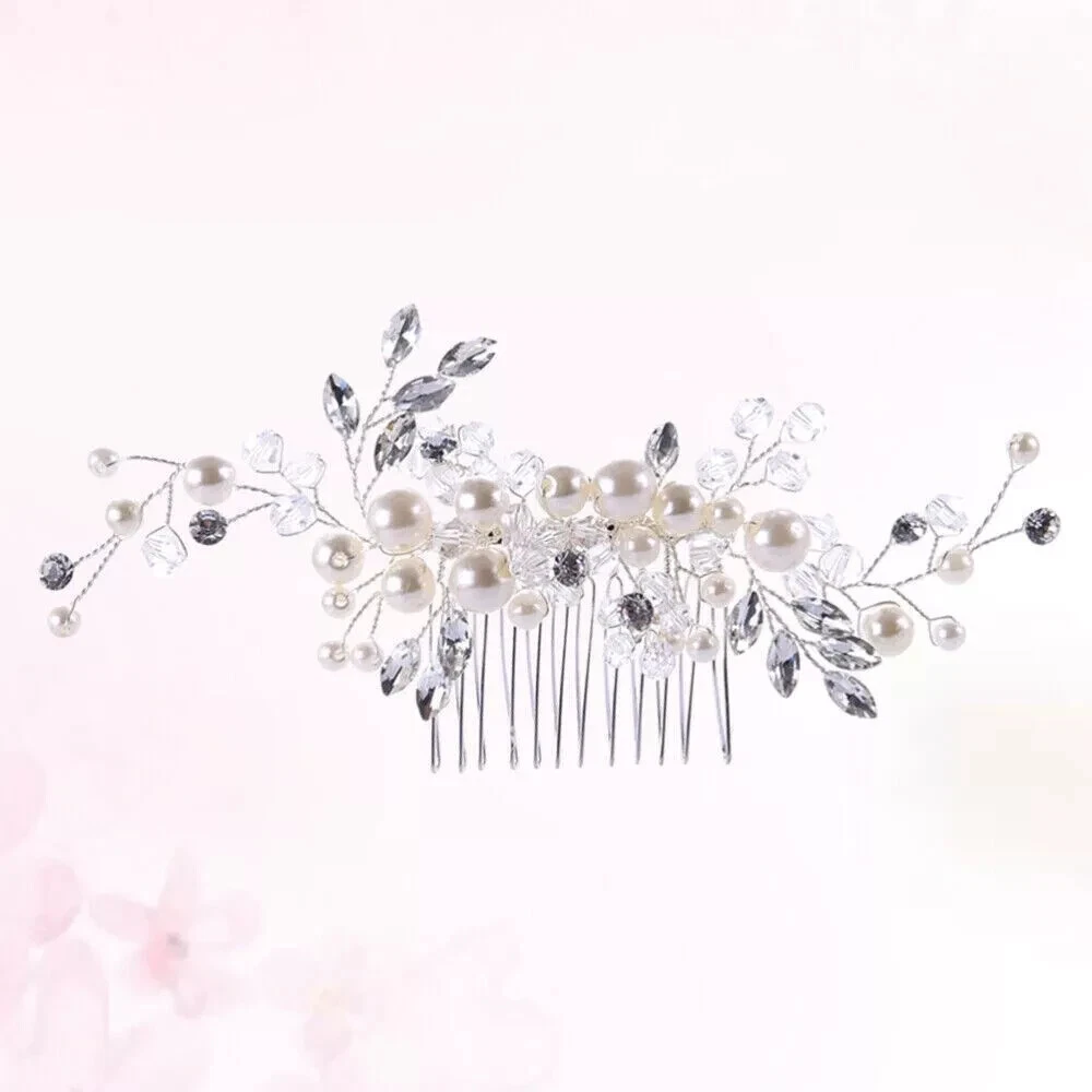 Description This bridal hair comb is made of pearl, and beautiful crystal. bride, bridesmaid, flower girls or wear it to a party. This exquisite designed hair comb and hairpins is a perfect alternative for headpiece such as crown, tiara or headband. Feature - The wedding hair accessories are suitable for any wedding party theme. Special for wedding, party, prom, party, engagement, anniversary or other special occasions. - Delicate crystal brings you a unique sense of beauty, leaving a deep impression. - Warm Tip: Dear buyer, due to lighting effect, monitor's brightness, manual measurement, etc., there could be some slight differences in the color and size between the photo and the actual item. Sincerely hope that you can understand! Thank you! - This headpiece would be a great choice for a bride or for any special occasion. Best gift choice for family, friends, and your girlfriend. - Delicate hair combs accessories for brides and bridesmaids, available in beautiful color. specification Category: Hair Accessories Style: Women's Material: Copper wire Size: 13*6cm Color: silver quantity: 1 Package includes: 1x Hairpin