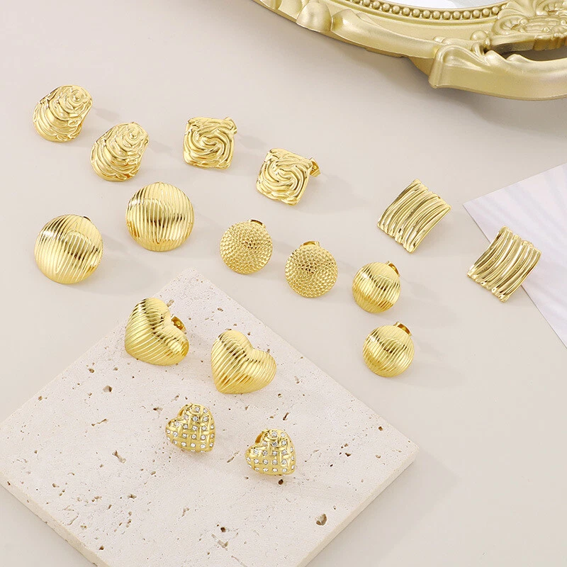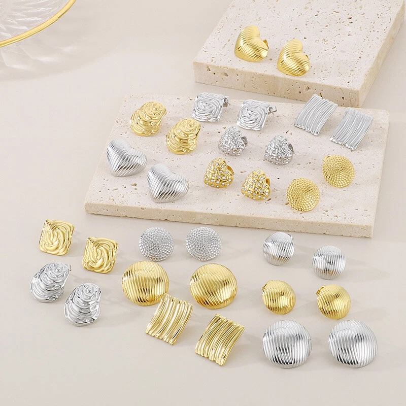New stainless steel hollow titanium steel texture earrings for women