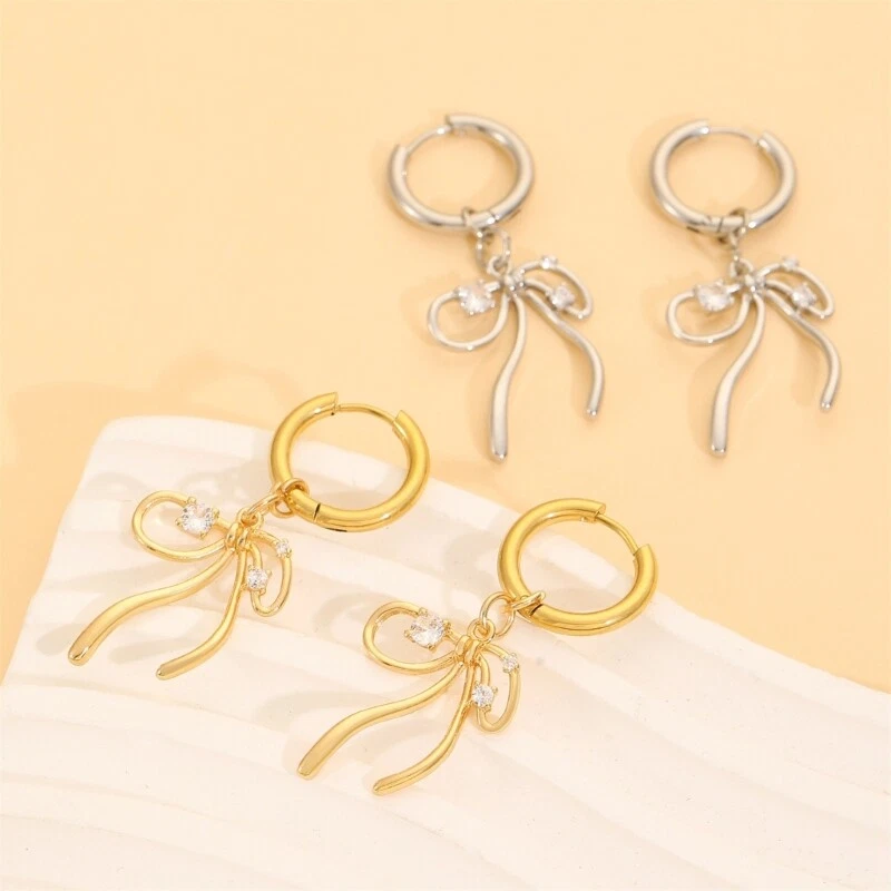 Fashionable Bow Ear Cuffs with Drop Dangles for Daily Wear Parties or Commuting