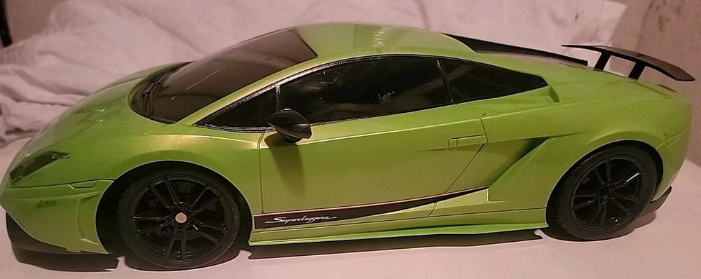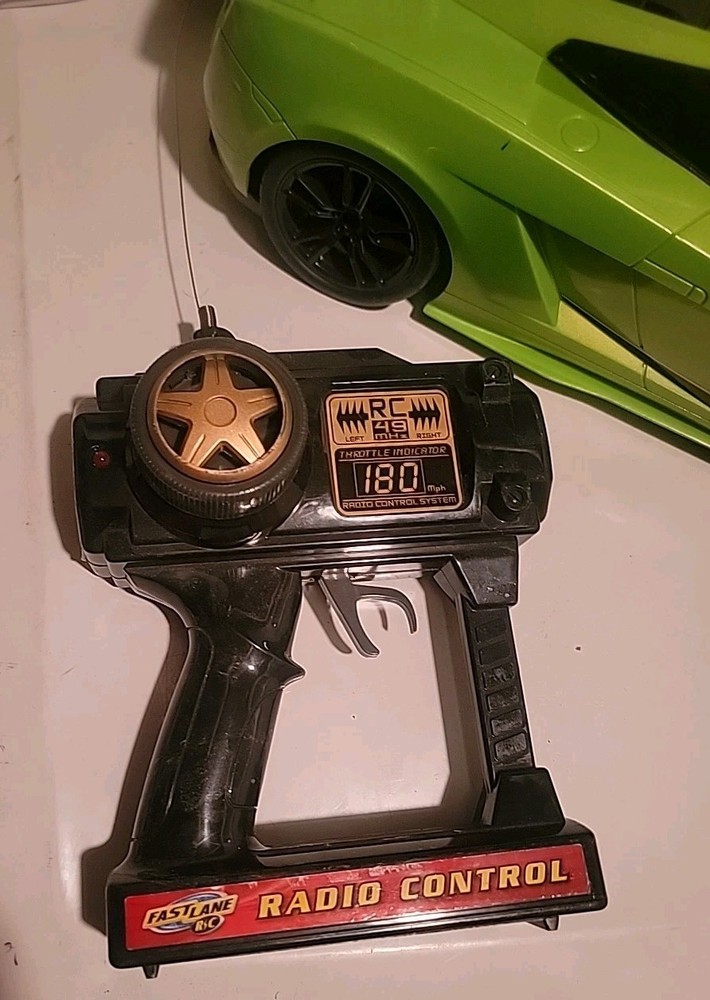 Pre-Owned Fast lane Rc Controller 49 MHZ & Lamborghini Gallardo LP 570-4 Superleggera 2011 model. Item requires a 9.6v battery for car and 9V battery for controller, both not included ITEM WAS PURCHASED FROM LOCAL STORAGE AUCTION SALE SO HISTORY OF THIS ITEM IS UNKNOWN THUS THE LISTING FOR PARTS OR REPAIR ONLY. NO TESTING HAS BEEN DONE "BEING SOLD FOR PARTS OR REPAIR ONLY" No box, but the item is in decent shape for age. See pictures for details. No battery, instructions, or charger included. Item has marks, scratches, discoloration, dirt, may be missing screws, parts, etc See pictures for details This lime green Lamborghini Gallardo LP 570-4 Superleggera 2011 toy grade model car is a must-have for any RC enthusiast. With a brushed motor type and ready-to-go assembly, this Fast Lane Lamborghini is perfect for on-road use. The car comes with a 49 MHz controller and is a vintage replica of the iconic Lamborghini Gallardo Superleggera. The car's material is made of plastic and is suitable for ages 12 and up. The product line is Fast Lane RC, and the model grade is perfect for beginners and intermediate users. This Lamborghini Gallardo model car is a great addition to any collection and provides hours of fun and entertainment.