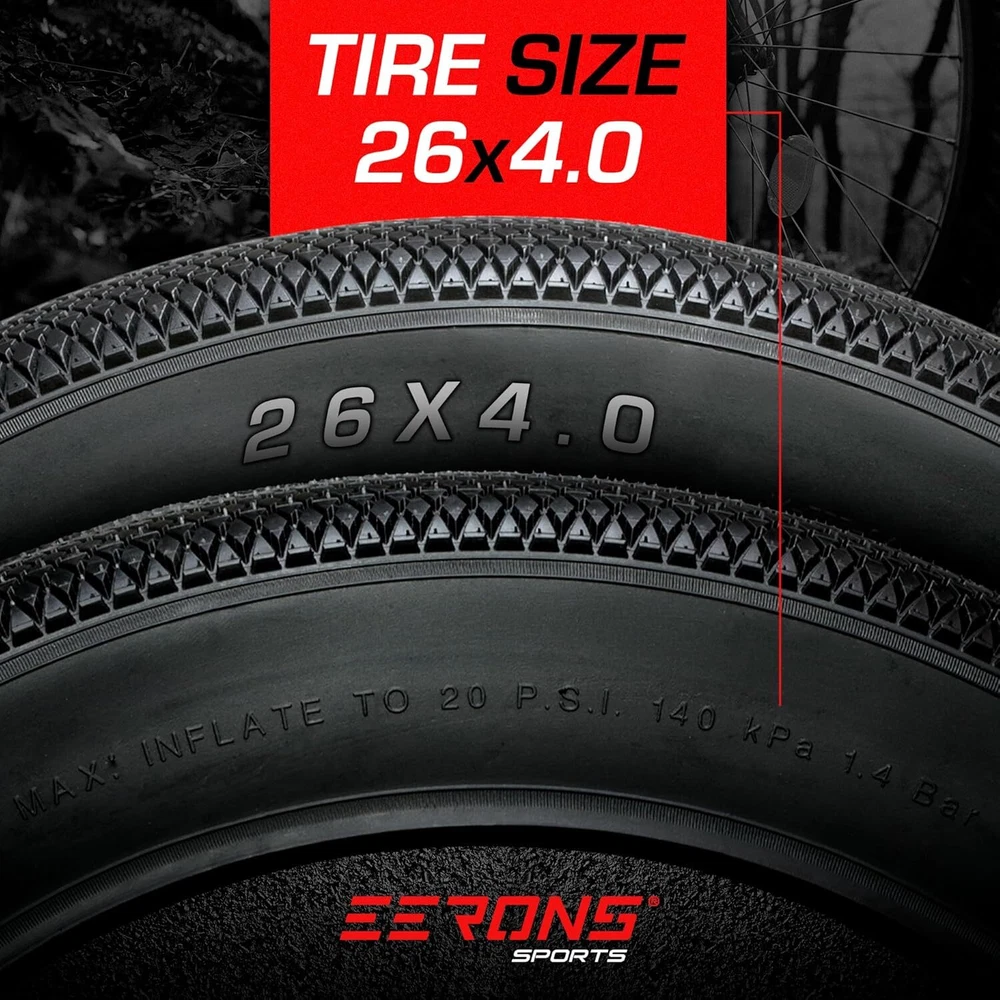 Fat Tire 26X4 for Bicycle, 60 TPI, Zero-Rolling Resistance, Folded Compatible wi Enhanced Rolling Speed: This 26x4 high-performance Bicycle Tire is designed to boost your rolling speed on hard-pack or paved terrain, making your rides smoother and more efficient. Minimal Drag: Experience minimal drag thanks to the tire's advanced design, allowing you to cover more ground with less effort. Zero Rolling Resistance: The honeycomb center tread virtually eliminates rolling resistance, ensuring your energy is used efficiently, whether you're commuting or hitting the trails. Ultimate Speed and Traction: The tread pattern of these tires offers both exceptional speed and superior traction, allowing you to confidently tackle various terrains with ease. Versatile Traction: These tires excel in all weather conditions, delivering excellent traction whether the roads are dry or wet, so you can ride with confidence no matter what Mother Nature has in stor Shipping We offer FREE shipping on all orders! We ship within Three business days of payment, usually sooner. Local pickups and combined shipping options are not provided at this time. Return You can return a product for up to 30 days from the date you purchased it. Any product you return must be in the same condition you received it and in the original packaging. Please keep the receipt. Payment We accept payment by any of the following methods: PayPal Please pay as soon as possible after winning an auction, as that will allow us to post your item to you sooner! Feedback Customer satisfaction is very important to us. If you have any problem with your order, please contact us and we will do our best to make you satisfied. Contact Us If you have any queries, please contact us via ebay. We usually respond within 24 hours on weekdays. Please visit our eBay store to check out other items for sale! Thank you for shopping at our store.