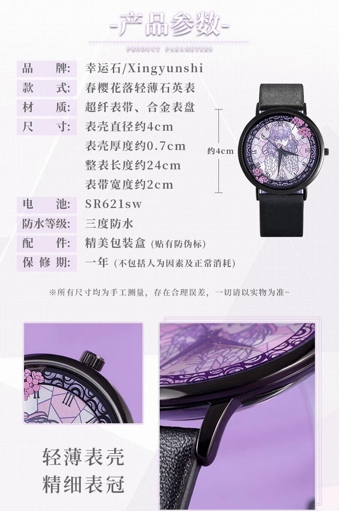 Fate/stay night FGO Matou Sakura Quartz Watch Wristwatch Xmas Gift Collection ACG Work Name: Fate/stay night Applicable Gender: Unisex Material: Superfiber strap, alloy dial Accessories: Exquisite Watch Box Size: The diameter of the case is about 4 cm, the thickness of the case is about 0.7 cm, the length of the watch is about 24 cm. Brand Unbranded Department Unisex Adults Type Wristwatch Style Classic Watch Shape Round Country/Region of Manufacture China Movement Quartz Features Wristwatch Theme Cartoon Case Material Metal Case Size 4cm Band Material microfiber Band Width 2cm
