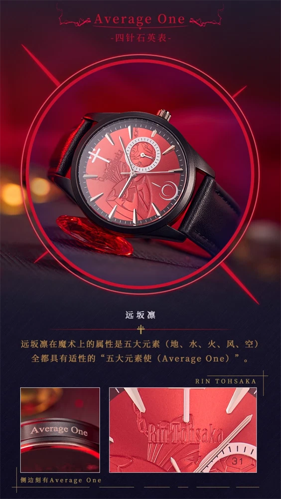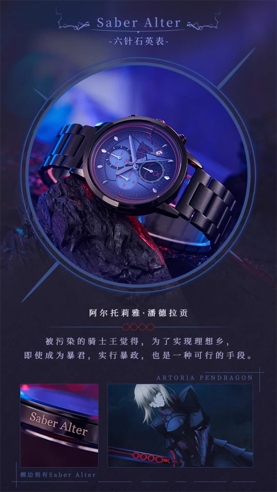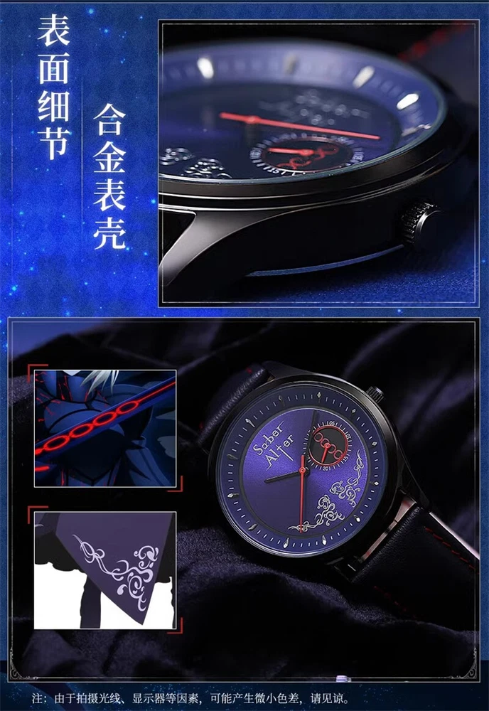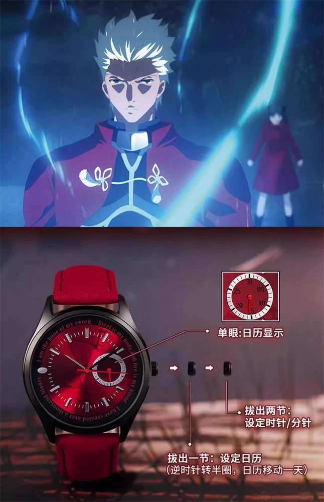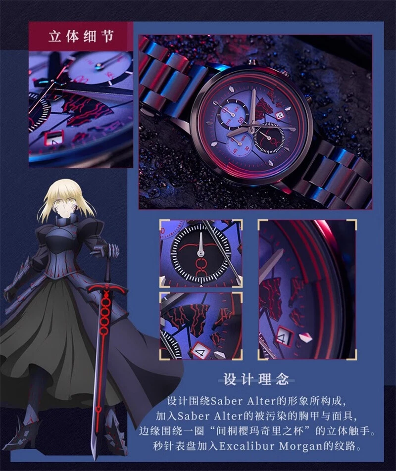 Fate/stay night Saber Alter Quartz Sakura Matou Rin Tohsaka Watch Wristwatch 100% Brand New & High Quality Color: (As Shown in Picture) Saber Alter - 6 Needle Watch Display Mode: 12 Hours/ Calendar Material: Alloy case, Stainless steel strap Display Time: Calendar/Hour/Minute/Second Size: Case Diameter: Approximately 4cm Case Thickness: Approximately 1cm Strap Width: Approximately 2cm Watch Length: Approximately 24cm Dial difference: 4 Needle small dials (calendar display) Average One - 4 Needle Watch Grail of Makiri - 4 Needle Watch Display Mode: 12 Hours/ Calendar Material: Alloy case, leather strap Display Time: Calendar/Hour/Minute/Second Small Dial: Timing Function Size: Case Diameter: Approximately 4cm Case Thickness: Approximately 1cm Strap Width: Approximately 2cm Watch Length: Approximately 24cm Dial difference: 6 Needle small dials (timing minute hand, second hand, 1/10 second hand) EMIYA - 4 Needle Watch Saber Alter - 4 Needle Watch Display Mode: 12 Hours/ Calendar Material: Alloy case, leather strap Display Time: Calendar/Hour/Minute/Second Size: Case Diameter: Approximately 4cm Case Thickness: Approximately 1cm Strap Width: Approximately 2cm Watch Length: Approximately 24cm Dial difference: 4 Needle small dials (calendar display) Package: 1 Watch Theme Anime Character Family Fate/stay night Character Saber Alter, Sakura Matou, Rin Tohsaka, EMIYA Type Wristwatch Style Modern Case Material Alloy Case Size 40 mm Case Thickness 10 mm Band Width 2 cm Watch Length Approximately 24cm Display Analog & Digital Movement Quartz Closure Buckle Features Chronometer Year Manufactured 2024 Department Unisex Adults Country/Region of Manufacture China Brand Unbranded