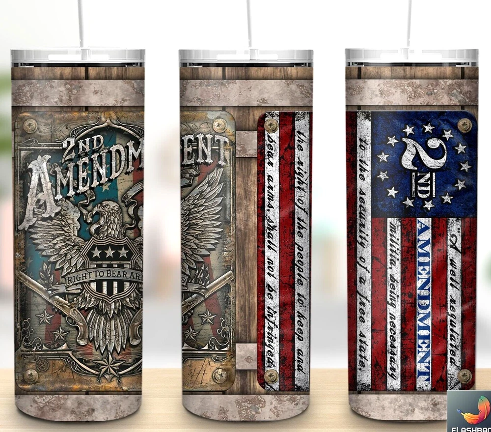 Fathers Day 2nd Amendment Multicolor 20oz Insulated Tumbler Lid Clear Straw New