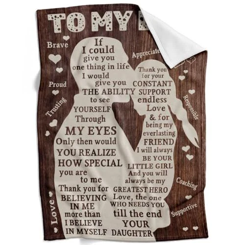 Special Feature: Skin Friendly, Lightweight, Fade Resistant, Breathable Item Length: 1 Manufacturer: Does Not Apply Fabric Type: Flannel Item Weight: 1.5 Pounds Size: 70"L x 50"W Style: Dad Blanket Blanket Form: Throw Blanket Sport: Camping Item Height: 1 Fabric Warmth Description: Lightweight Type: Does Not Apply EAN: Does Not Apply Brand: Does Not Apply Number of Items: 1 Age Range Description: Adult Color: Dad Blanket Daughter gtin13: Does Not Apply Item Width: 1 MPN: Does Not Apply Recommended Uses For Product: Camping UPC: 763055453961 Date First Available: March 20, 2024 Pattern: Letter Print Product Dimensions: 70"L x 50"W Theme: Dad Material: Flannel Product Care Instructions: Machine Wash Seasons: All