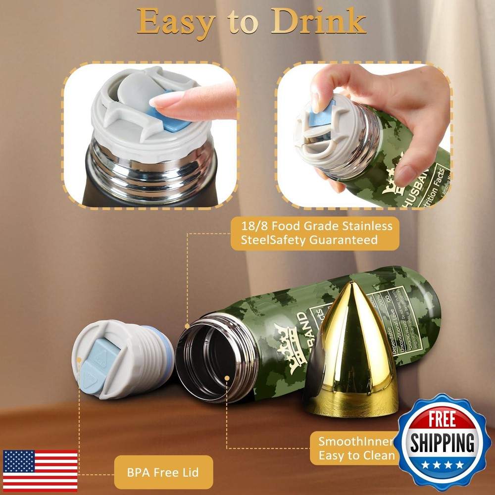 RHONGE Fathers Day Men Gifts For Husband, Husband Bullet Tumbler 17 Oz, Camo Fathers Gifts Bullet Tumbler For Him From Wife, Birthday Valentine's Day Anniversary Present, Best Husband Ever Cup Features Ideal Gift for Your Husband: This bullet-shaped tumbler is the best gifts to show your love and appreciation. Whether it's for husband surprise or husband birthday gifts, this thoughtful gift from a wife will surely make him feel special Premium Stainless Steel Construction: Crafted from high-quality, stainless steel, this bullet tumbler can stay cool 12 hours and stay hot 6 hours. Its design ensures it can withstand daily use while maintaining its elegant appearance, it must be a best gifts for your husband Generous Capacity: In order to be a best husband gift, this coffee mug has been made to have a large capacity. With a 17oz capacity, this stainless steel tumbler is perfect gift for keeping his favorite beverages at the ideal temperature long time Versatile for Any Occasion: This insulated tumbler is the perfect gifts for the office, gym, or weekend adventures. This coffee mug could also be used for your husband's birthday gift. Its compact, bullet shape makes it easy to carry, while the secure lid prevents spills Care and Maintenance Tips: To ensure longevity, hand wash with mild soap and avoid using abrasive cleaners. Not suitable for microwave use. Enjoy years of reliable performance with proper care. The stainless steel insulated tumbler can be a best gift for your husband Shipping Free & Fast Shipping: We offer free shipping to most of the USA with a normal delivery time of 3-7 days. However, due to the current situation, additional delivery time (up to 3 weeks) may be required for some items. Alternative Carriers: We may use alternative carriers (e.g., USPS, FedEx, UPS) to ensure your package arrives safely and on time. Due to the use of multiple carriers, we are unable to provide a tracking number automatically. Handling Time: Orders are processed and shipped within 1-2 business days of receiving cleared payment. Shipping Restrictions: Shipping to Alaska, Hawaii, Puerto Rico, Guam, and other US territories may incur shipping charges or delivery restrictions. Please contact us before ordering, or your order can be refunded/cancelled. State Restrictions: Certain items may not be shipped to California due to state regulations. Contact for Tracking Updates: If you require tracking updates or have any concerns about the delivery of your order, please feel free to contact us, and we will be happy to assist you. Return Policy 30-Day Hassle-Free Returns: If you are not completely satisfied with your purchase, you can return the item for free within 30 days of receiving it for a full refund or exchange. Easy Return Process: Contact us, and we will provide you with a prepaid return shipping label and detailed instructions. No Restocking Fee: There are no restocking fees for returns. However, the buyer is responsible for return shipping costs if the return is not due to a seller's error. Refund Processing: Refunds will be processed within 1 business day of receiving the returned item in its original condition. Payment We accept all major credit cards, PayPal, and Apple Pay for your convenience. Your payment information is secure and encrypted to ensure a safe and seamless transaction. Please complete your payment within 3 days of purchase to avoid any delays in shipping. Feedback Your feedback is extremely important to us. We strive to provide the best products and customer service possible. If you are satisfied with your purchase, please take a moment to leave us a positive review. If you have any concerns or issues with your order, please contact us before leaving negative feedback. We are committed to resolving any problems and ensuring your satisfaction. Contact Us If you have any questions or concerns, please feel free to reach out to our customer support team. You can contact us through the eBay messaging system. We are available Monday to Friday, 9:00 am to 5:00 pm EST, and we will do our best to respond to your inquiry within 24 hours. Thank you for supporting our small family business!