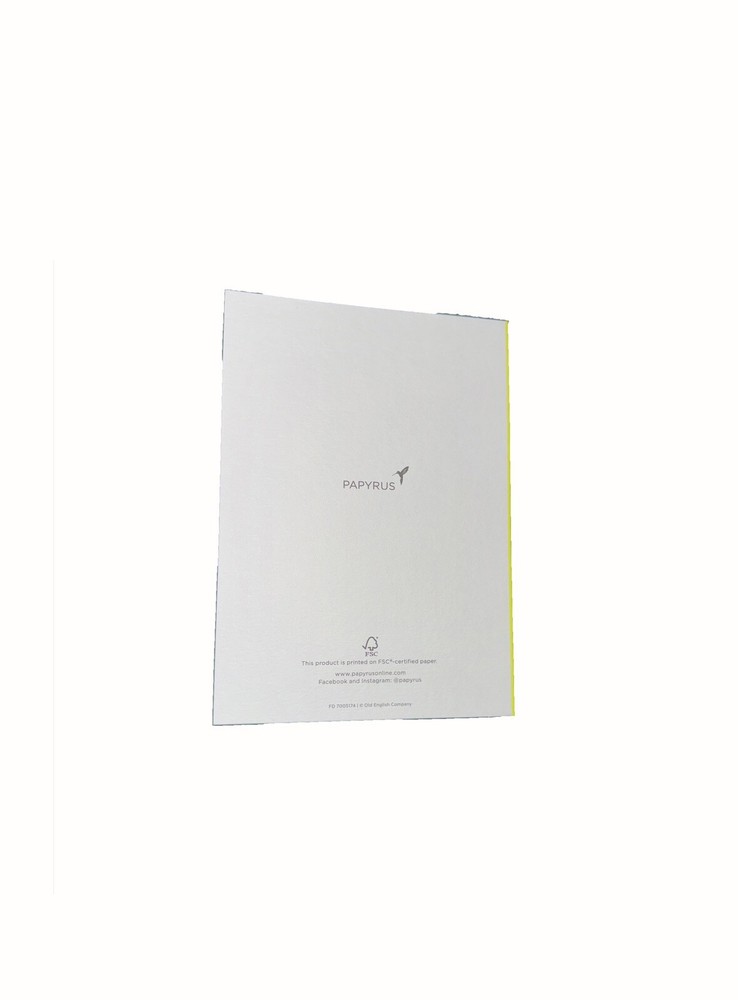 It’s a yellow card with blue and red text. Paige one and two are hard to read because of the picture but it says Page 1:” * EVEN THOUGH WE ALREADY KNEW! HAPPY FATHER’S DAY “ Page 2: Is blank for a personal message to be written
