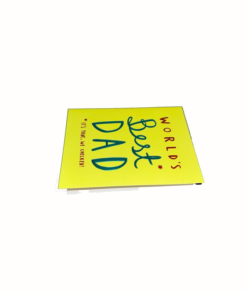 This Father’s Day card is such a sweet and thoughtful gift! The bright yellow with blue and red text makes it stand out, and the blank page inside is perfect for adding a personal touch. Even though the first page’s design makes the text a little hard to read, the message is still heartfelt and fun. Any dad would love receiving this!