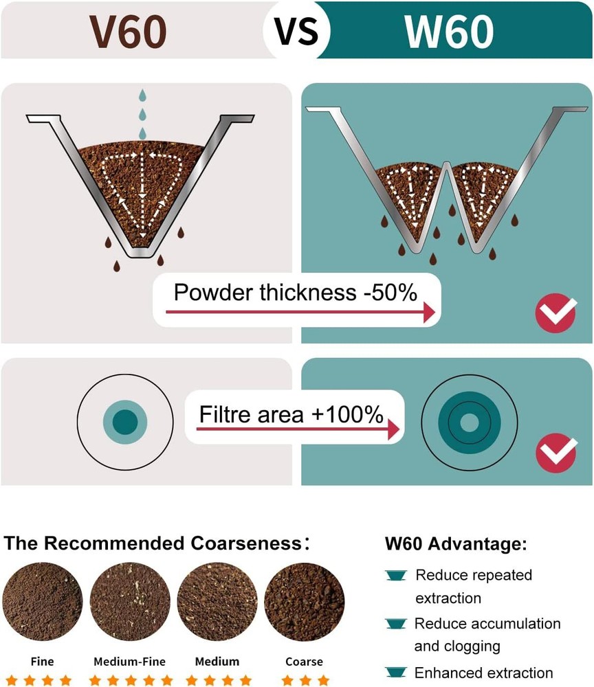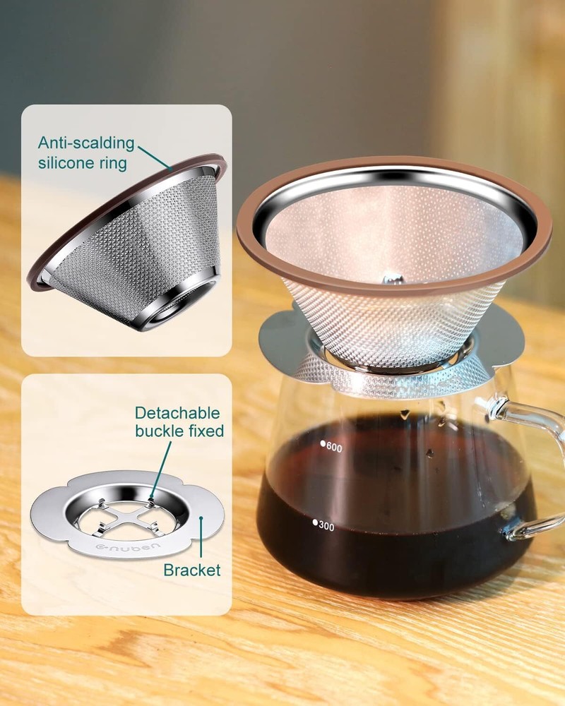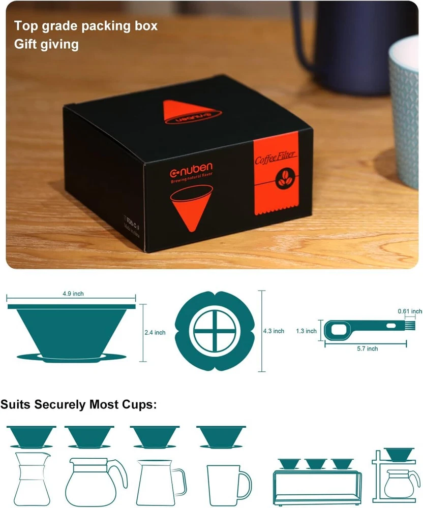 Fathers Day Dad Gifts from Cnuben Pour Over Coffee Dripper Cone forstanley cup accessories,Without Filter Stainless Steel Reusable Pour Over Coffee Filter 1-3 Cup Paperless Metal Cone Product Details Material: Stainless Steel Brand: cnuben Shape: W Number of Pieces: 1 Unit Count: 1 Count [Excellent quality] The reusable pour over coffee filters double-layer steel coffee cone is made of high-quality 316 food grade stainless steel plate engraving and stainless steel wire woven mesh. The W60 coffee dripper is precisely machined. Coffee sesame oil is easy to extract, and the equipment can reach the extraction rate of Jinbei. With the most reasonable flow rate and extraction time, anyone can make delicious drip coffee like a professional barista. [Elegant design] The strong, stable and safe detachable base design is suitable for cups pour over coffee makers and coffee sharing pots of almost all materials and calibers. Anti-scalding silicone handle can protect you from holding it, exquisite carving, design patent filing [Portable] The W60 coffee dripper is small and light, very suitable for use at home, work, travel, and Camp pour over coffee . The reusable coffee filters metal is environmentally friendly and economical, saving you the cost of ceramic pour over coffee dripper filter paper. It can be used as an ordinary coffee dripper with filter paper, or it can filter tea for you [Easy to use] Without professional drip coffee skills, anyone can achieve the best taste of drip coffee. The metal pour over coffee dripper brews the natural flavor of coffee beans. The taste of drip coffee is more stable, and with its unique texture, it can achieve the best flavor. [No reason to return] If you are not completely satisfied with the stainless steel coffee filter poured within 180 days, we will provide a 100% refund-no questions asked. If you have any questions, please send an email to us as soon as possible. Coffee spoons and small brushes are extra gifts for you.